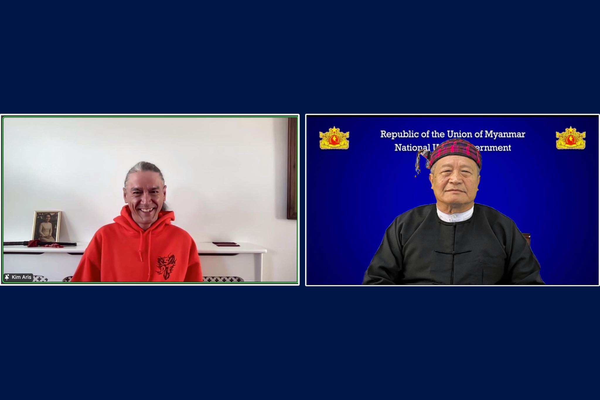 အမျိုးသားညီညွတ်ရေးအစိုးရ NUG ယာယီသမ္မတ ဒူဝါလရှီးလနဲ့ နိုင်ငံတော်အတိုင်ပင်ခံပုဂ္ဂိုလ် ဒေါ်အောင်ဆန်းစုကြည်ရဲ့ သားငယ်ဖြစ်သူ ကိုထိန်လင်း (ခေါ်) Kim Aris တို့ ဒီနေ့မှာ အွန်လိုင်းကတဆင့် တွေ့ဆုံခဲ့ကြပါတယ်။