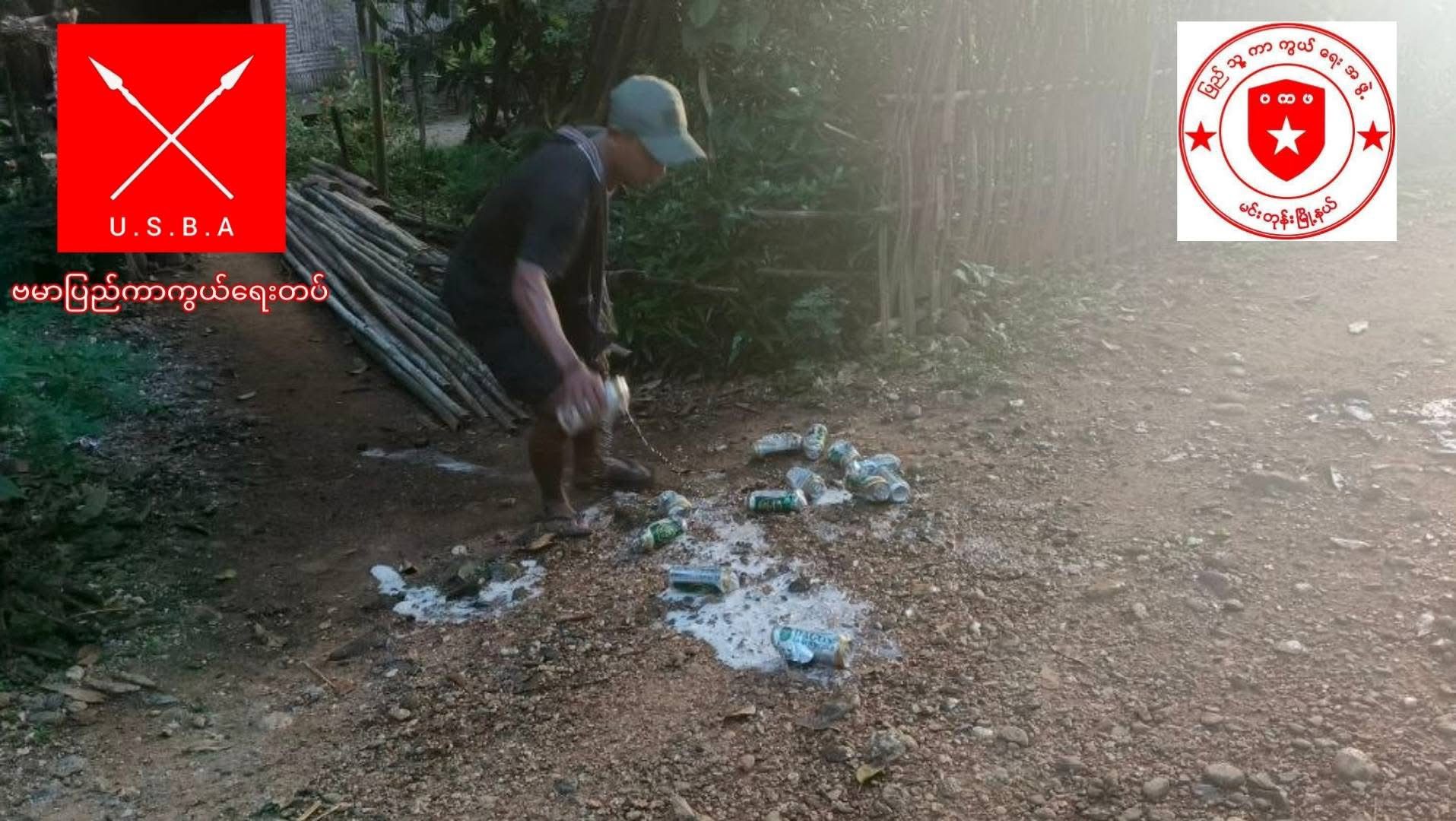 မကွေးတိုင်း၊ သရက်ခရိုင်၊ မင်းတုန်းမြို့နယ်မှာအကြမ်းဖက်စစ်တပ်ထုတ်ကုန်တွေ ရောင်းချနေတဲ့ မင်္ဂလာဦးကျေးရွာက ဆိုင်တချို့ကို သွားရောက်စစ်ဆေးရင်း ထုတ်ကုန်တွေကို ဖျက်ဆီးကာ ရောင်းချနေသူတွေကို ပြင်းပြင်းထန်ထန် သတိပေးတားမြစ်ခဲ့တယ်လို့ ဗမာပြည်ကာကွယ်ရေးတပ် – USBA တာ၀န်ခံ ကိုဗဟိန်းက မောင်းကို ပြောပါတယ်။
