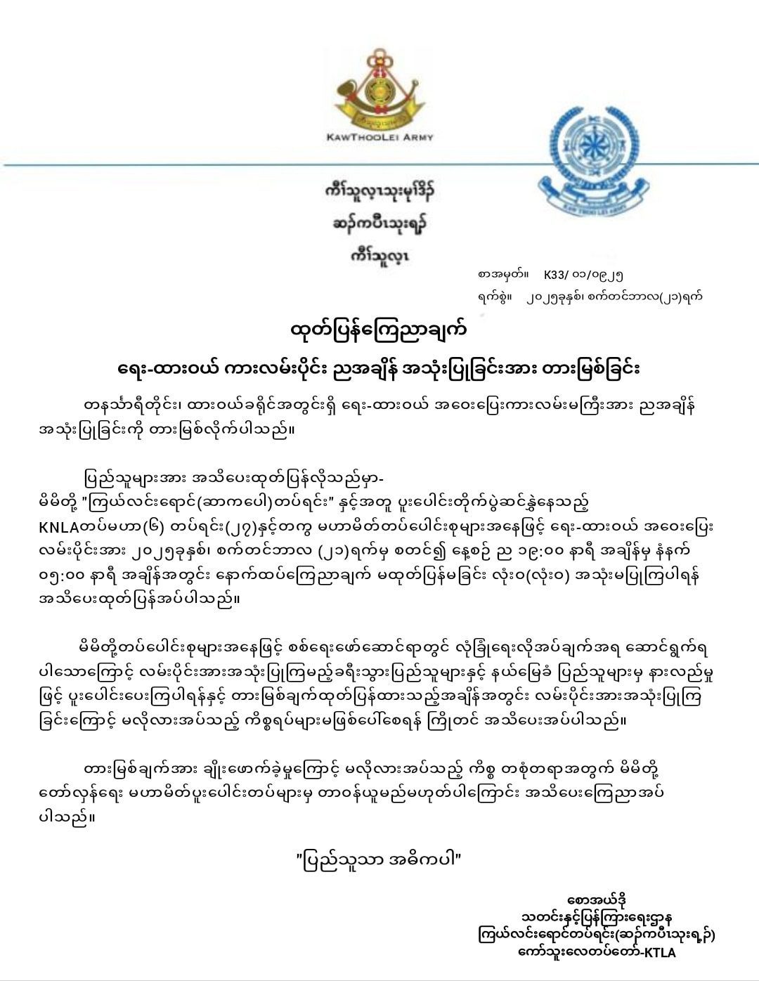“ဘယ်နေ့လောက် ပြန်ဖွင့်မလဲဆိုတော့ စစ်ရေးအပေါ်ပဲ မူတည်တာပေါ့။ စစ်ရေးလိုအပ်ချက်အထိပဲ ကျနော်တို့ ပိတ်မှာဖြစ်တယ်။ ကျနော်တို့ကလည်း ရန်သူနဲ့ ပြည်သူကို ခွဲခြားချင်လို့ ဒီလိုထုတ်လိုက်ရခြင်း ဖြစ်တယ်” လို့ ကြယ်လင်းရောင် (ဆာကပေါ) တပ်ရင်း ပြန်ကြားရေးတာဝန်ခံက ပြောခဲ့ပါတယ်။