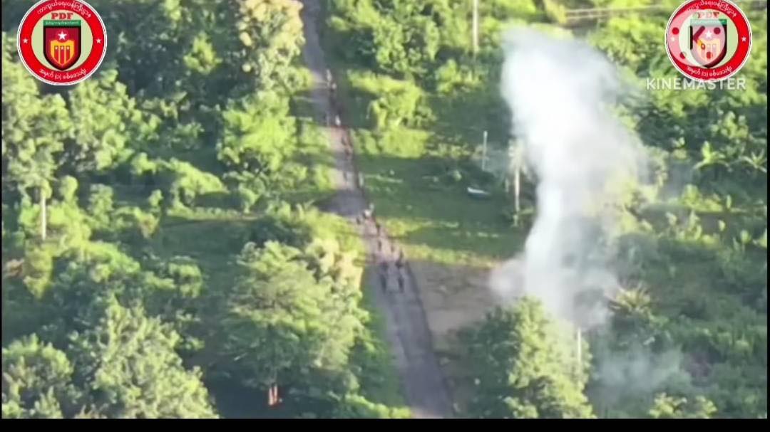တော်လှန်ရေးတပ်ဖွဲ့ဝင်များ၏ ဒရုန်းဖြင့်ဗုံးကြဲတိုက်ခိုက်မှုကြောင့် အကြမ်းဖက်စစ်သားများ ဆုတ်ခွာနေစဥ် (ဓာတ်ပုံ အမှတ် (၁) စစ်ဒေသ)