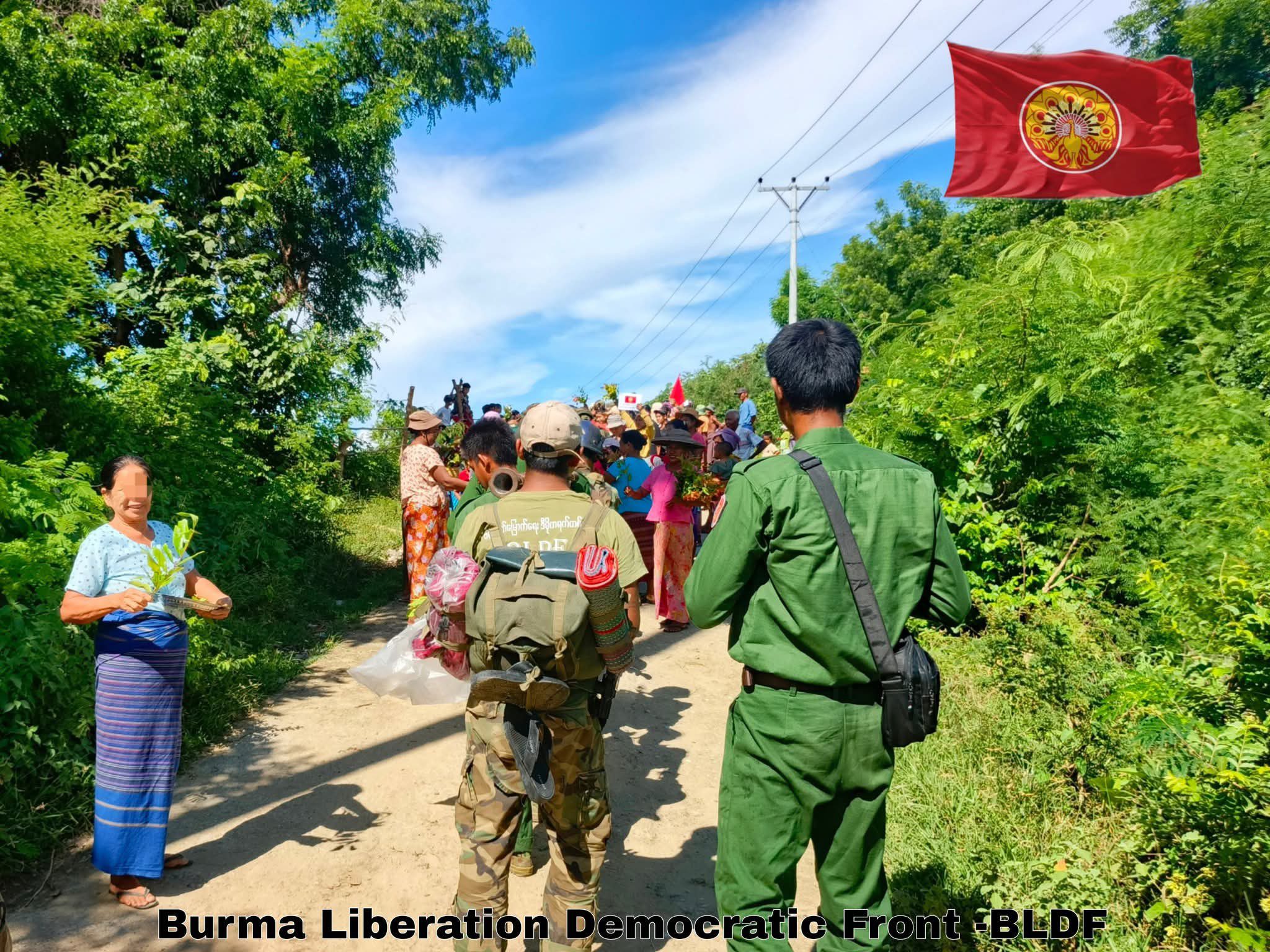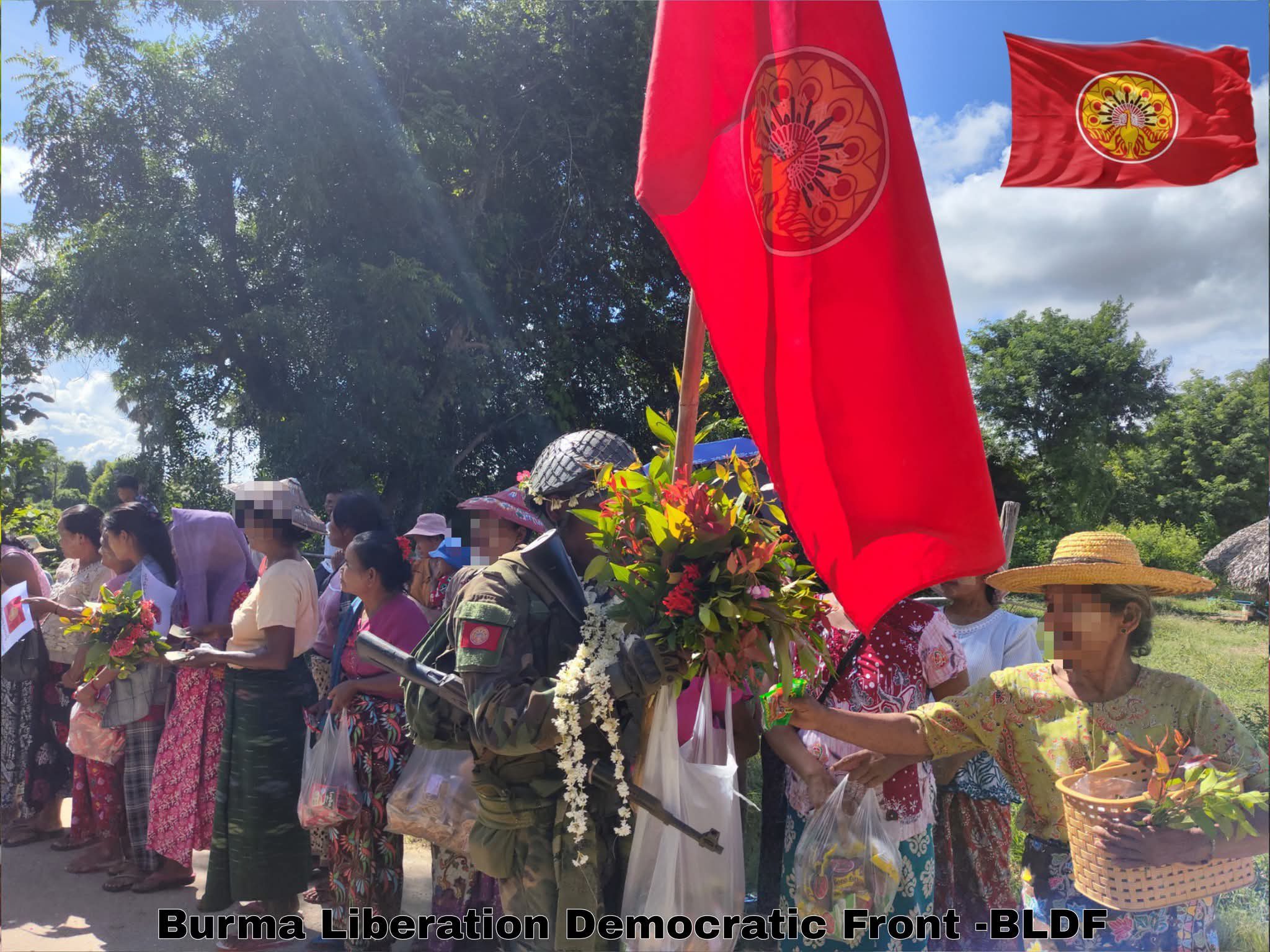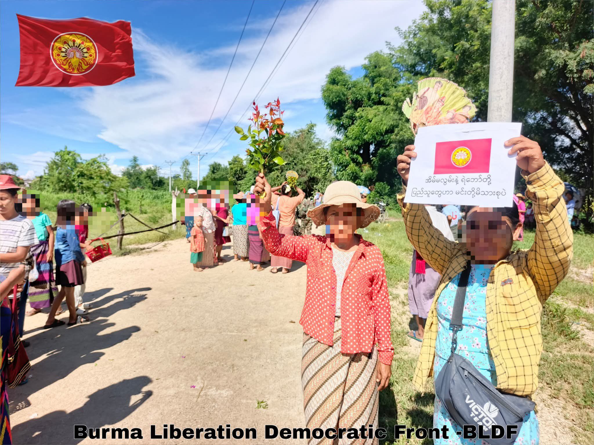 “အညာဒေသကို စစ်ကြောင်းထိုးလာတဲ့ ဖက်ဆစ် စစ်တပ်ကို တပ်လန်သွားအောင် တိုက်ထုတ်ပြီးအောင်ပွဲနှင့် ပြန်လာတဲ့ ကျွန်တော်တို့ BLDF ရဲဘော်တွေကို အခြေစိုက်ဒေသ ပြည်သူတွေက ကြိုဆိုဂုဏ်ပြုနေတဲ့ ပုံရိပ်တွေကို တင်ပြလိုက်ပါတယ်။ အိမ်မလွမ်းကြနဲ့ ရဲဘော်တို့ ပြည်သူတွေဟာ မင်းတို့မိသားစုပဲ” လို့ BLDF တပ်ဖွဲ့က ထုတ်ပြန်ထားတာပါ။