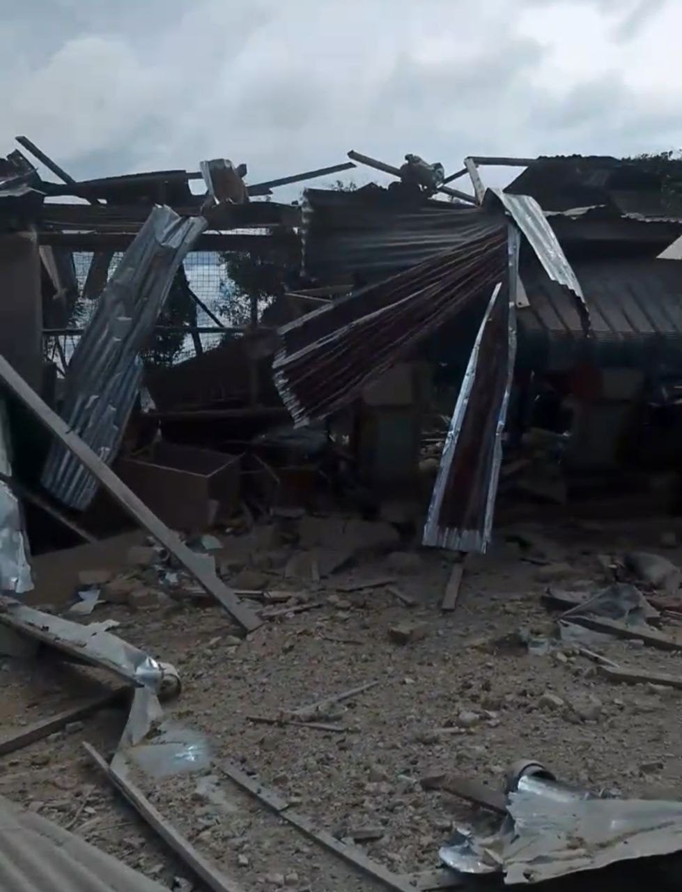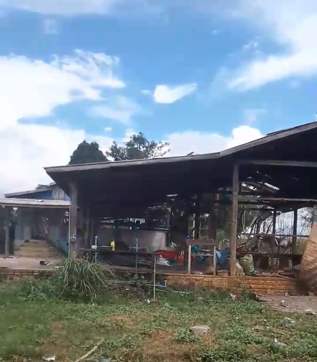 အကြမ်းဖက်စစ်တပ်ရဲ့ ဗုံးကျရောက်ပေါက်ကွဲမှုကြောင့် ဘုန်းကြီးကျောင်းရှိ ကျောင်းဆောင်နဲ့ ဆွမ်းစားဆောင်တို့ ထိမှန်ပျက်စီးသွားခဲ့တယ်လို့ TNLA က ဆိုပါတယ်။