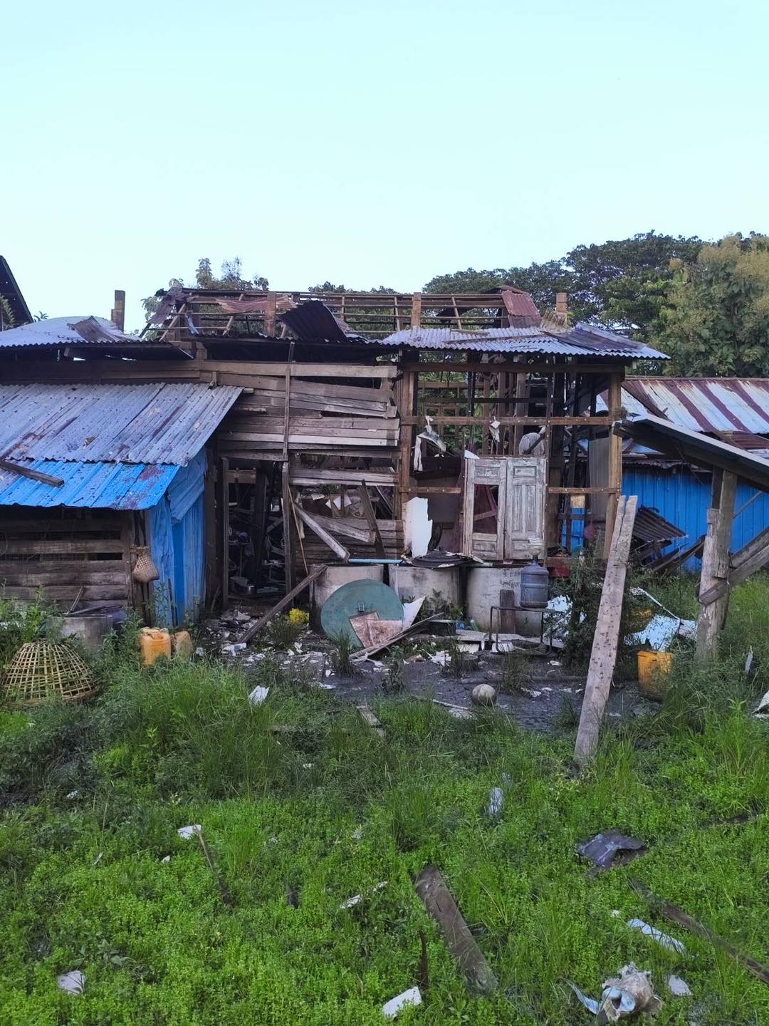 “အဲဒီရွာက အရင်က ဒရုန်းနဲ့ အကြဲမခံဖူးဘူး။ လက်နက်ကြီးနဲ့တော့ အပစ်ခံရဖူးတယ်။ နေအိမ်ကတော့ ရစရာကို မရှိတော့ဘူး။ ထိမှန်သွားတဲ့ကလေးက ဘယ်ဘက်နို့အုံပေါ့ ပြောရရင် နှလုံးထိမှန်သွားတာ၊ ဒီကလေးက အိမ်ပေါ်တက်ပြီး စာကျက်နေတာ၊ ဒရုန်းလည်းချရော အိမ်အောက်ကို ပြေးဆင်းသေးတယ်။ ဒရုန်းက အိမ်ပေါ်တည့်တည့်ကို ကျတာ။ သူ့ကိုထိပြီး နေရာမှာတင် ပွဲချင်းပြီး သေဆုံးသွားတာ” လို့ ၃၈၀၁ တပ်ရင်း၊ တပ်ခွဲ (၁) တပ်ခွဲမှူး ကိုကရင်လေးက မောင်းကို ပြောပါတယ်။