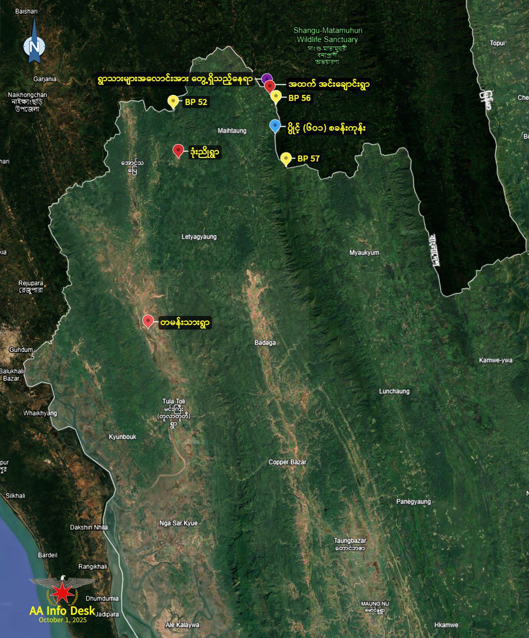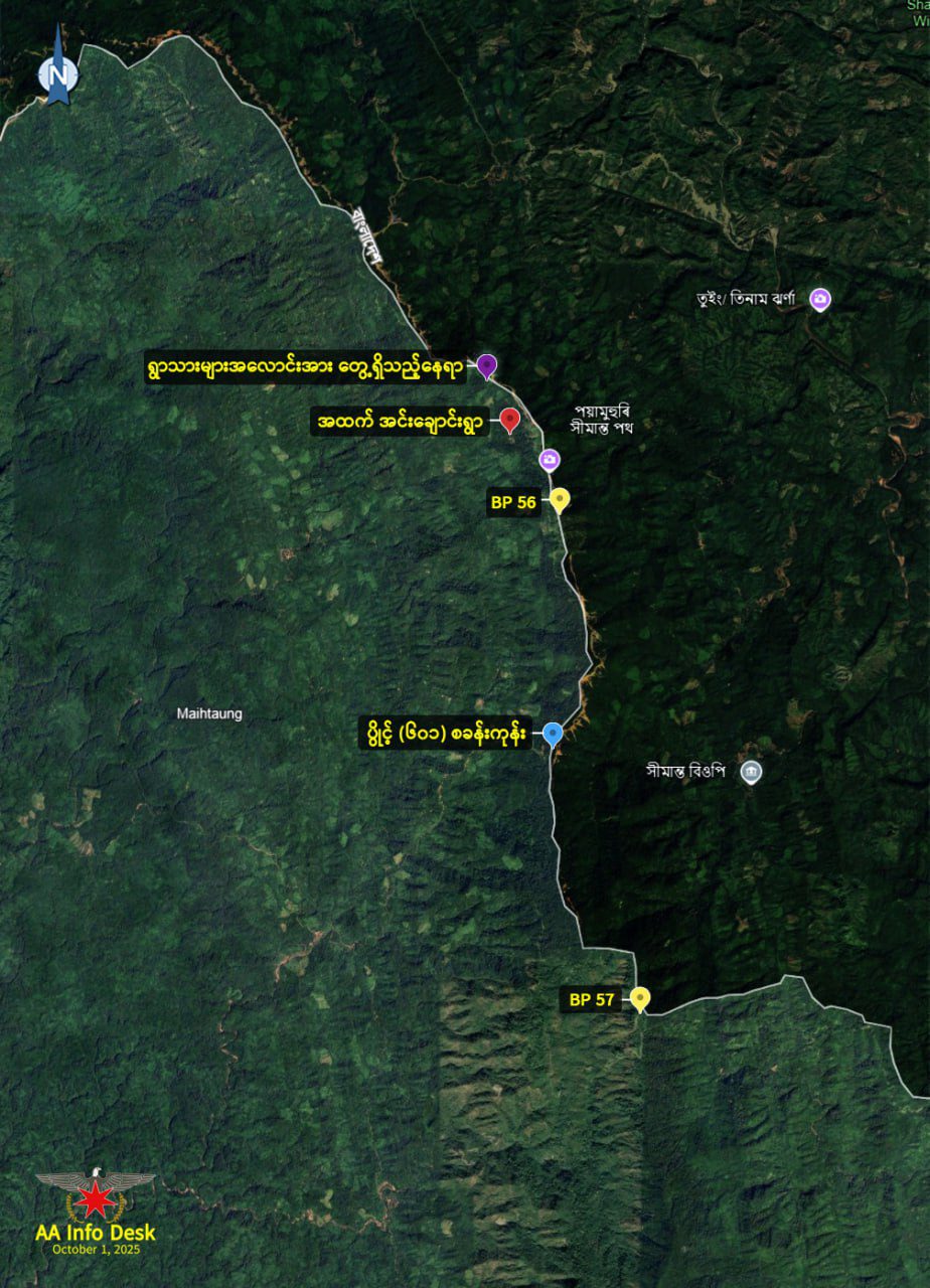 မောင်တောမြို့နယ် မြောက်ပိုင်း နယ်စပ်အမှတ် ၅၆ နဲ့ ၅၇ ကြား ပွိုင့် ၆၀၁ ကုန်းမှာ ပြီးခဲ့တဲ့ စက်တင်ဘာလအတွင်း ARSA တပ်ဖွဲ့ဝင်တွေနဲ့ AA တို့အကြား တိုက်ပွဲဖြစ်ပွားခဲ့တယ်လို့ သိရပါတယ်။