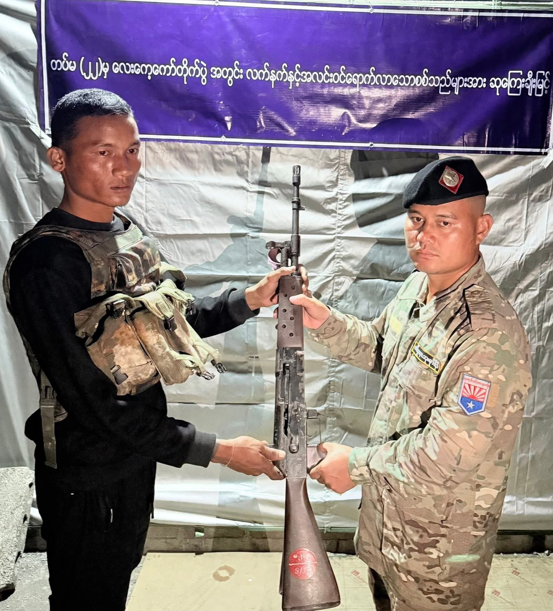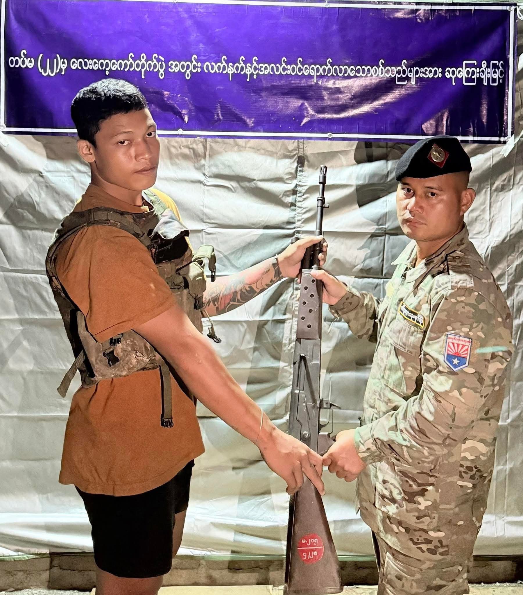 အောက်တိုဘာလ ၆ ရက် မနေ့က အကြမ်းဖက် စစ်တပ်ရဲ့ တပ်မ ၂၂ ကနေ စစ်မှုထမ်းတပ်သားသစ် ၃ ယောက်ဟာ MA အမျိုးအစား သေနတ်တွေနဲ့အတူ ကော်ဘရာစစ်ကြောင်းထံ အလင်းဝင်ရောက်လာတာကြောင့် ဂုဏ်ပြုဆုငွေတွေ ချီးမြှင့်ခဲ့တယ်လို့ သိရပါတယ်။