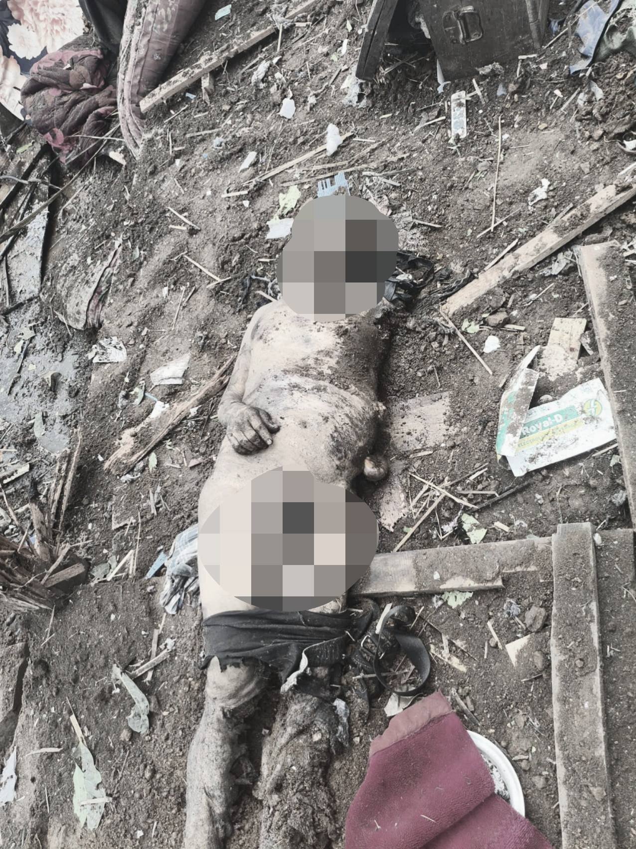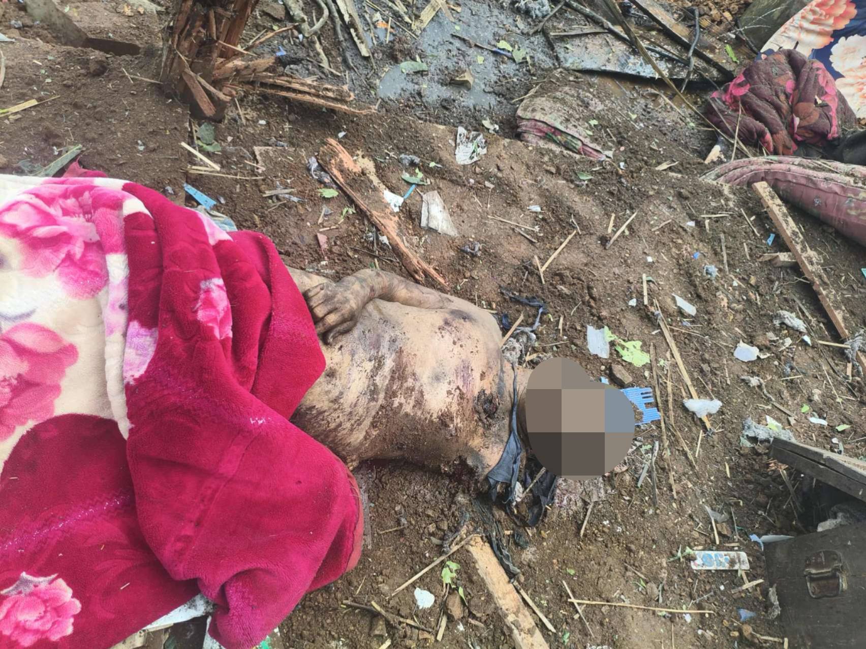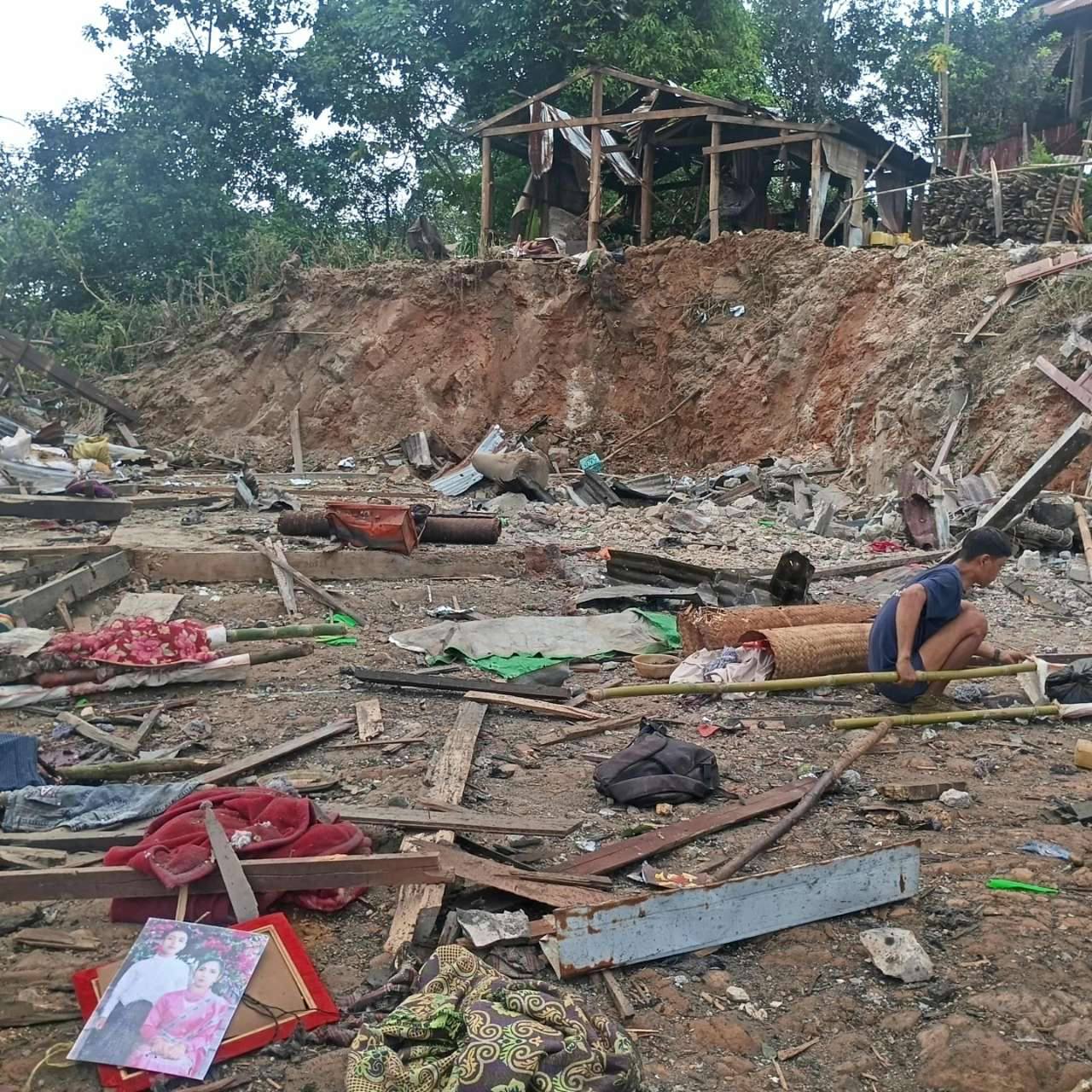 မိုက်ဟုန်းကျေးရွာကို စစ်တပ် ဗုံးကြဲတိုက်ခိုက်ပြီးနောက် တွေ့ရစဉ် (ဓာတ်ပုံ TWO)