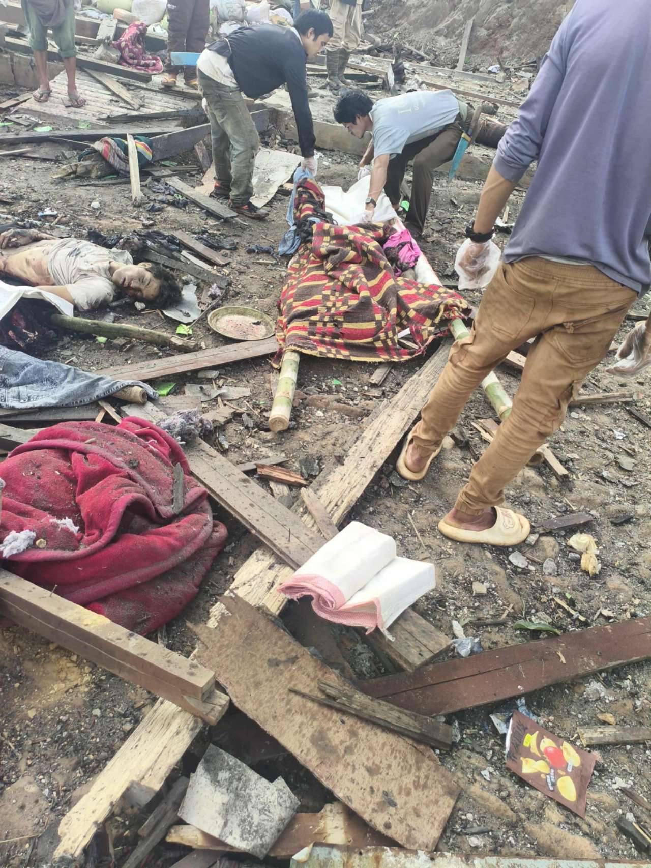 လေကြောင်းတိုက်ခိုက်မှုကြောင့် သေဆုံးသူတွေကတော့ မောင်အိုက်ဦး (၂နှစ်)၊ ကိုအိုက်ထပ် (၂၇ နှစ်)၊ ကိုအောင်ဆာ (၂၉ နှစ်)၊ ကိုဆိုင်းစံပွင့် (၃၅ နှစ်)၊ ကိုအိုက်ကျန်ဆာ (၃၇ နှစ်)၊ ဒေါ်အုန်းခင် (၄၅ နှစ်)၊ နန်းခင်ပ (၂၉ နှစ်)၊ နန်းလှဆိုင် (၂၅ နှစ်)၊ နန်းအေးတက် (၂၂ နှစ်)၊ ဒေါ်နန်းအေးမေ (၃၉ နှစ်) တို့ ဖြစ်တယ်လို့ သိရပါတယ်။