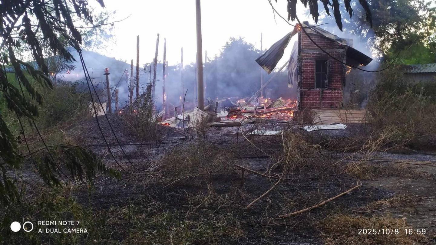 အကြမ်းဖက်စစ်ကြောင်း မီးရှို့ဖျက်ဆီးခဲ့သည့် စိုင်ဒူးရွာ မြင်ကွင်း (ဓာတ်ပုံ ယောအလင်းတန်း)