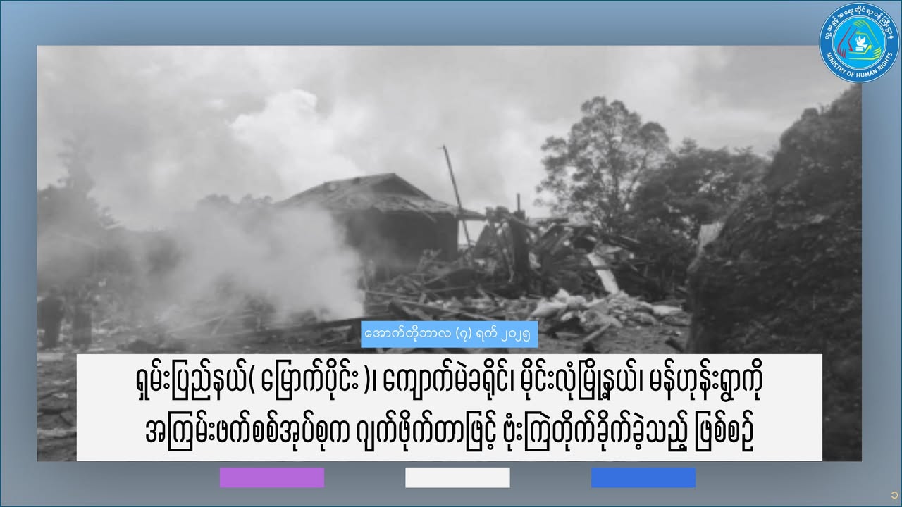 ရှမ်းပြည်နယ်မြောက်ပိုင်းရှိ တအာင်းတပ်မတော် – (PSLF/TNLA) ထိန်းချုပ်ထားတဲ့ မိုင်းလုံမြို့နယ်ကို အကြမ်းဖက်စစ်တပ်က ဗုံးကြဲတိုက်ခိုက်ခဲ့ရာ ကလေးငယ် ၁ ယောက် အပါအဝင် ပြည်သူ ၁၀ ယောက် သေဆုံးခဲ့တယ်လို့ အမျိုးသားညီညွတ်ရေးအစိုးရ၊ လူ့အခွင့်အရေးဆိုင်ရာဝန်ကြီးဌာနက ဒီနေ့ ထုတ်ပြန်ပါတယ်။