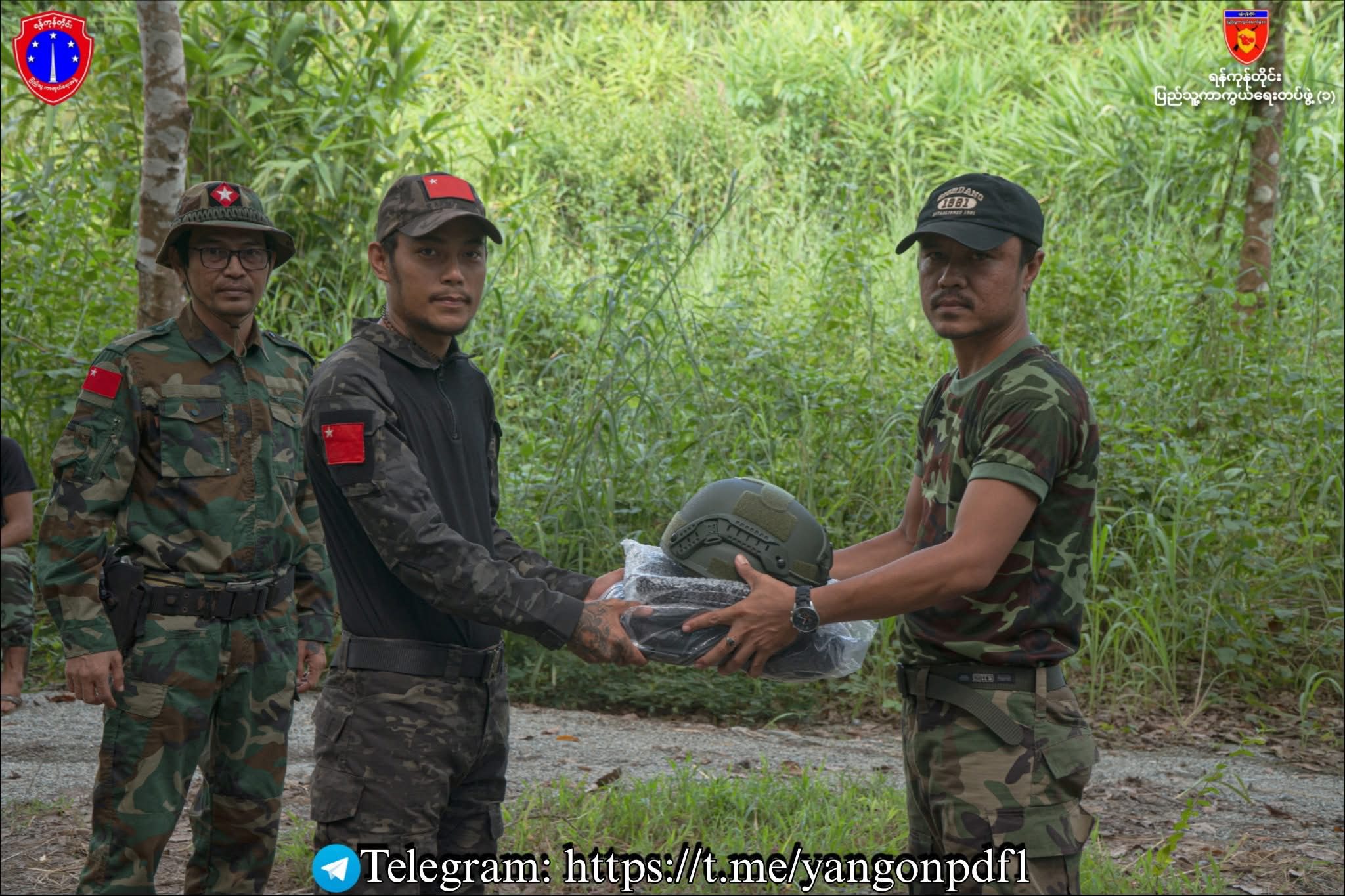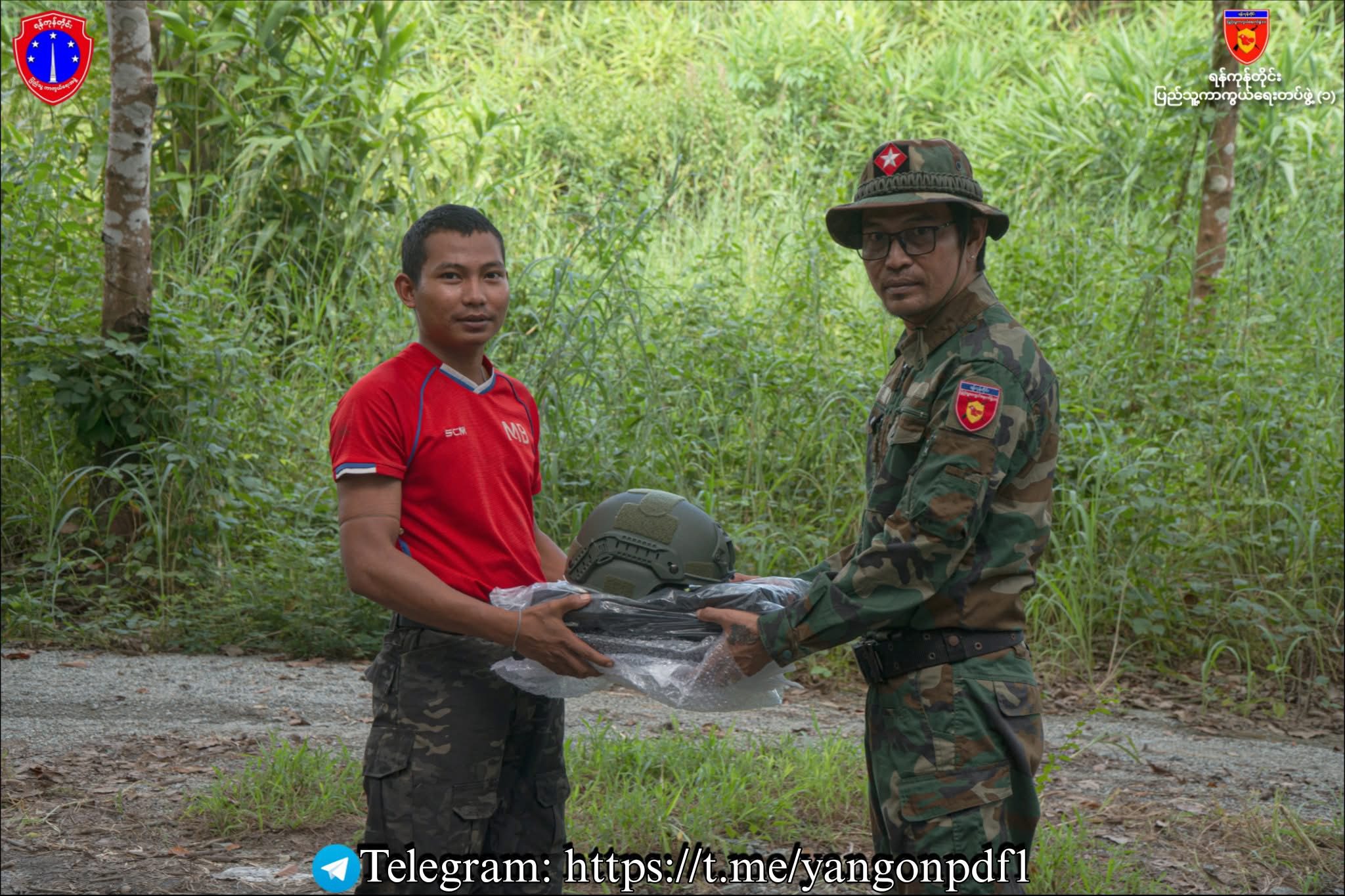 “ရန်ကုန်အဝင် ချပ်ဝတ်ဆင်” ကျည်ကာကမ်ပိန်းကတဆင့် တော်လှန်ပြည်သူတွေရဲ့ ထောက်ပို့ငွေတွေနဲ့ ဝယ်ယူထားတဲ့ VEST ၊ ကျည်ကာ၊ ဦးထုပ် အစုံရေ (၅၀) ကို ရှေ့တန်းရဲဘော်တွေဆီ သွားရောက်တပ်ဆင်ပေးခဲ့တယ်လို့ ရန်ကုန်တိုင်း ပြည်သူ့ကာကွယ်ရေးတပ်ဖွဲ့ – ၁ က ထုတ်ပြန်ပါတယ်။