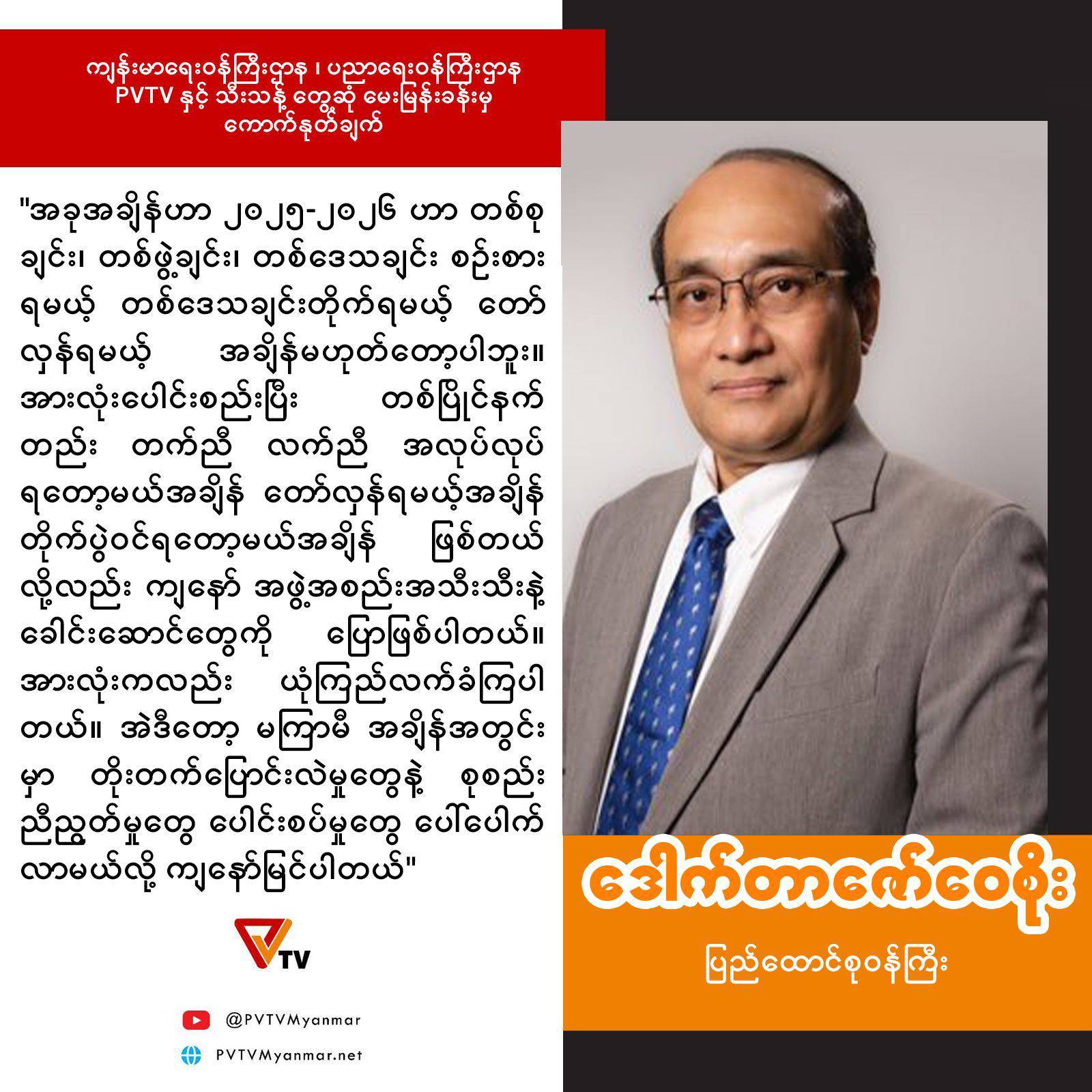 ဒေါက်တာဇော်ဝေစိုးဟာ NUG အစိုးရရဲ့ State Media ဖြစ်တဲ့ PVTV နဲ့ သီးသန့် တွေ့ဆုံမေးမြန်းခန်းမှာ အခုလို ပြောဆိုခဲ့တယ်လို့ သိရပါတယ်။