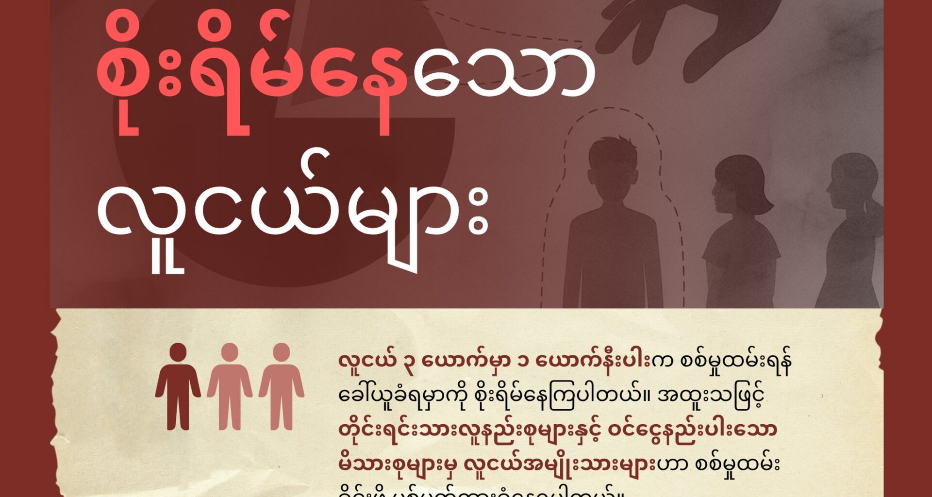 လက်ရှိ မြန်မာနိုင်ငံအတွင်းက လူငယ် ၃ယောက်မှာ ၁ယောက်နီးပါးက အတင်းအဓမ္မ စစ်မှုထမ်း ခေါ်ယူခံရနိုင်ခြေကို စိုးရိမ်နေကြတယ်လို့ ကုလသမဂ္ဂဖွံ့ဖြိုးမှုအစီအစဥ် UNDP Myanmar က ထုတ်ပြန်ထားပါတယ်။