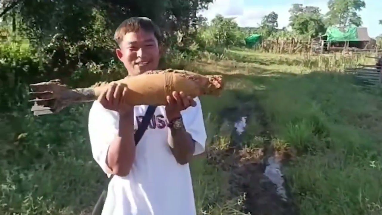 ရုပ်သံဖိုင်အတွင်း မြေကြီးထဲ နစ်မြုပ်နေတဲ့ ဗုံးသီးကို ရဲဘော်တွေဟာ အကာအကွယ်မပါဘဲ လက်နဲ့တူးကာ ဖယ်ရှားပေးခဲ့ကြပါတယ်။