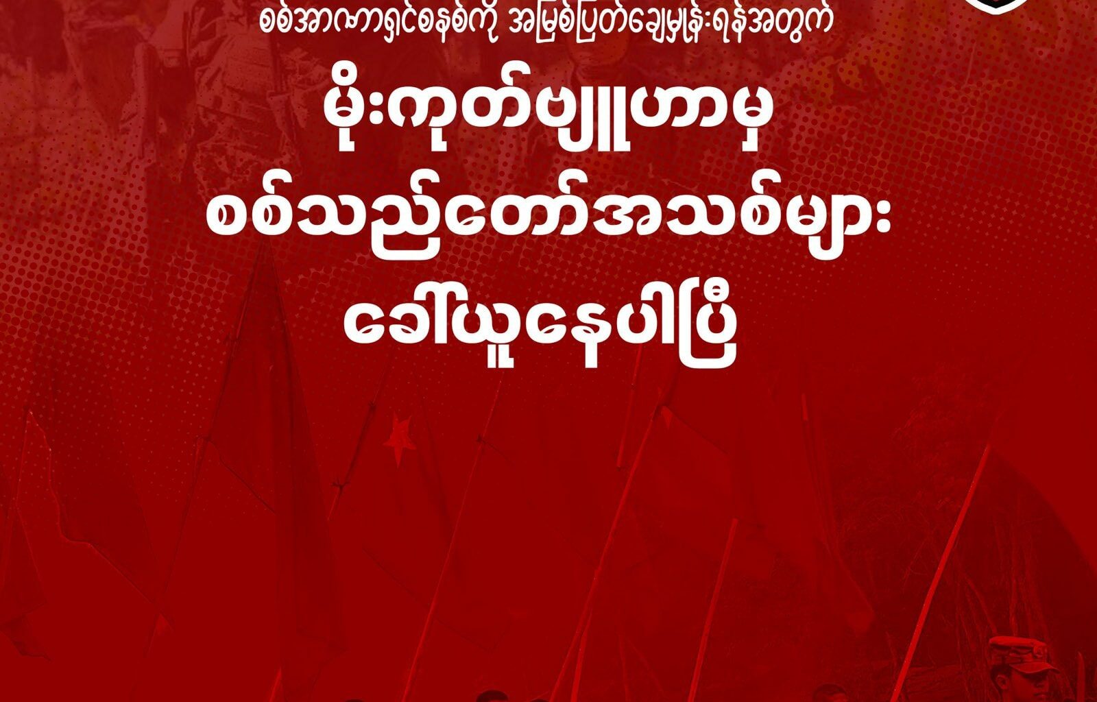 အမျိုးသားညီညွတ်ရေးအစိုးရ NUG ၊ ကာကွယ်ရေးဝန်ကြီးဌာနအောက်ရှိ မိုးကုတ်ဗျူဟာက တပ်သားသစ်တွေ ခေါ်ယူနေကြောင်း ကြေညာထားပါတယ်။