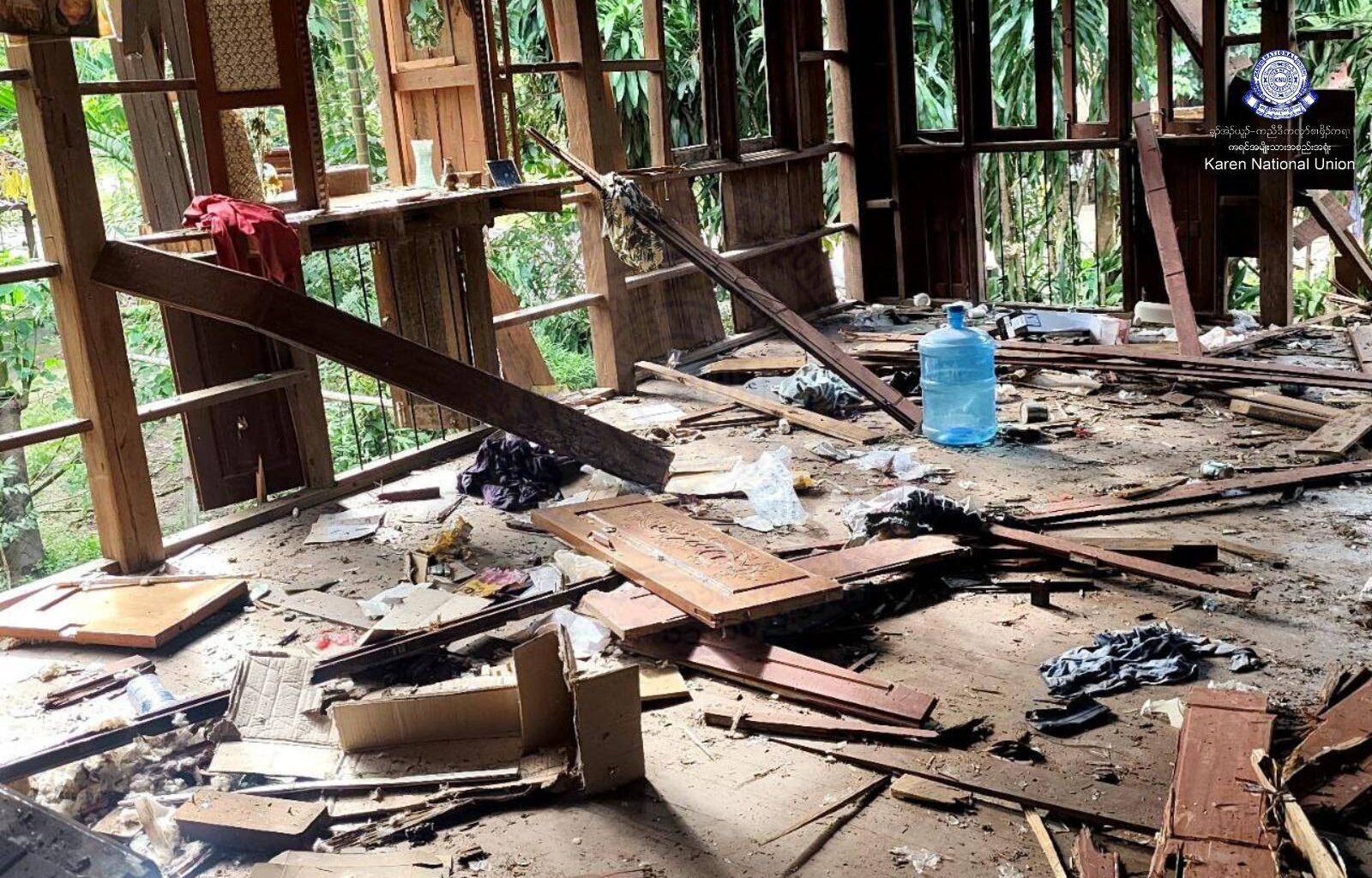 အာဏာသိမ်းစစ်တပ်မှ လေယာဉ်ဖြင့်ဗုံးကြဲမှုကြောင့် ထိခိုက်ပျက်စီးမှုများ (ဓာတ်ပုံ KNU-Doo Tha Htu District)