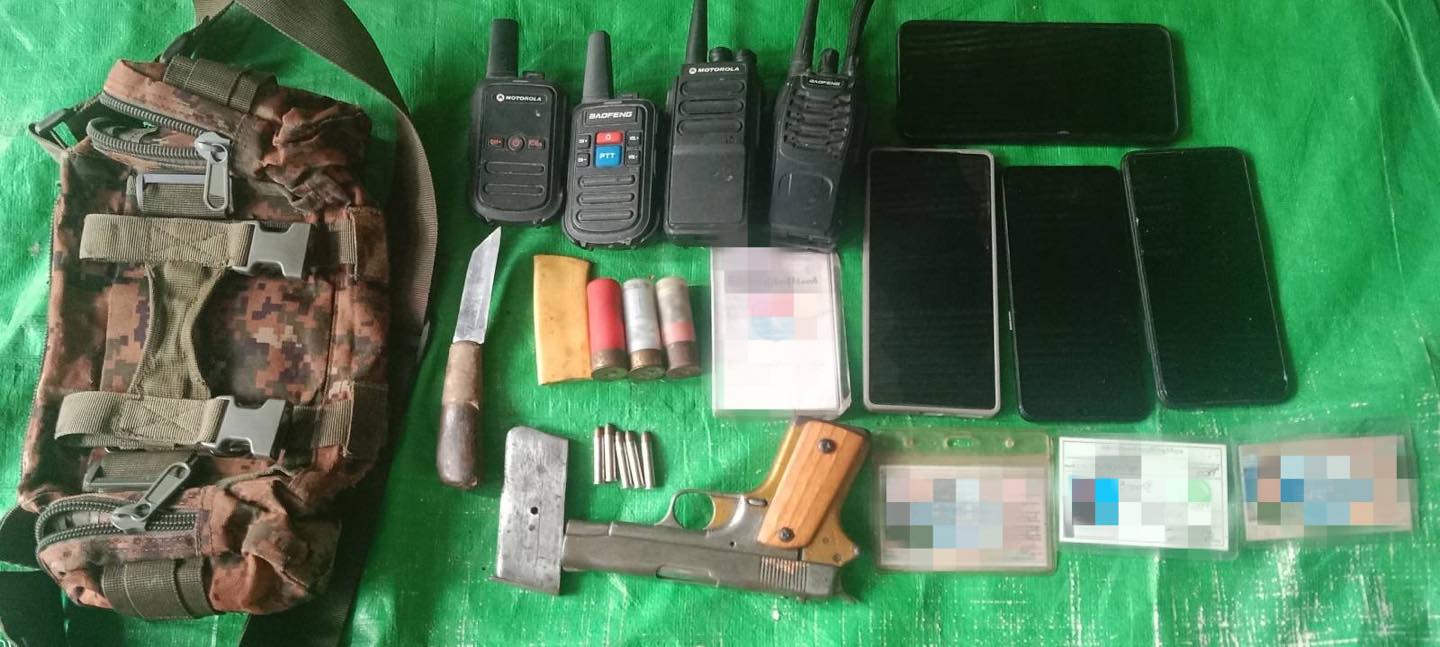 ပစ်ခတ်ရှင်းလင်းမှုအပြီး ကော့သောင်းခရိုင်ပကဖ သိမ်းဆည်းရမိသည့် ပစ္စည်းများ
