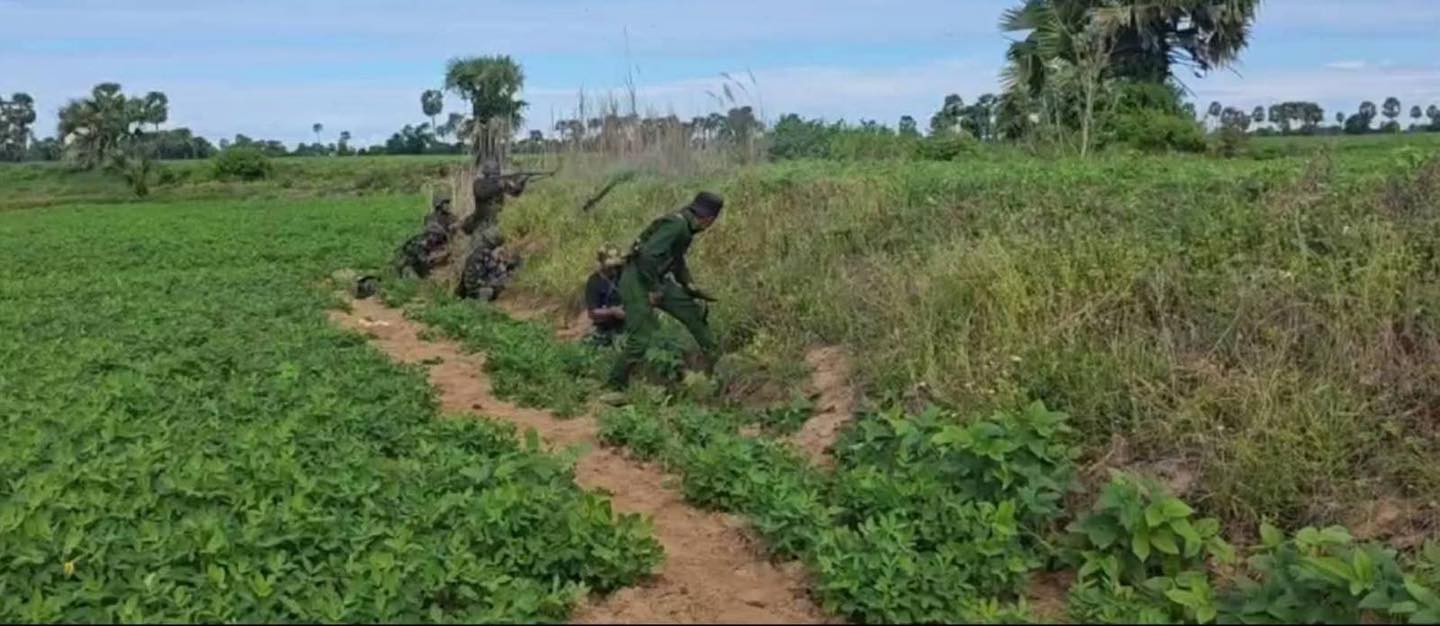 ကာဘိုးစခန်းကို ပြန်ဆုတ်လာသည့် အကြမ်းဖက်စစ်ကြောင်းအား တိုက်ခိုက်နေသည့် တော်လှန်ရေးတပ်များ (ဓာတ်ပုံ တန့်ဆည်ပကဖ)
