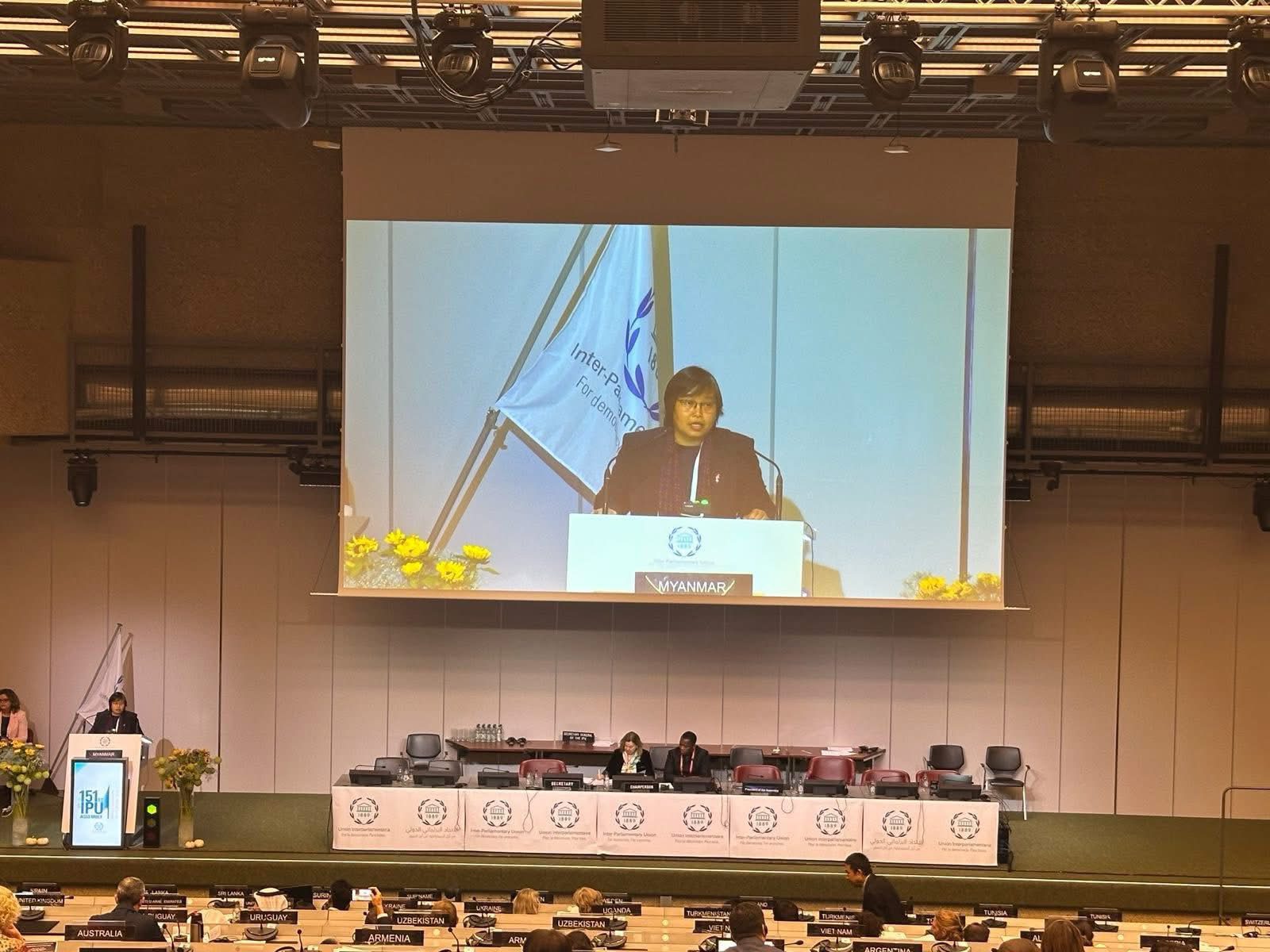 (၁၅၁) ကြိမ်မြောက် နိုင်ငံတကာပါလီမန်များ (IPU) ညီလာခံမှာ အမျိုးသားညီညွတ်ရေးအစိုးရ၊ နိုင်ငံခြားရေးဝန်ကြီး ဒေါ်ဇင်မာအောင်က အကြမ်းဖက်စစ်တပ် အာဏာသိမ်းပြီးနောက် ပြည်သူ ၆၈၀၀ ကျော်သေဆုံးပြီး ပြည်သူ ၂၂၀၀၀ ကျော် အကြောင်းပြချက်မရှိ ဖမ်းဆီးခံထားရတယ်လို့ ပြောဆိုခဲ့ကြောင်း NUG က ဒီနေ့ ထုတ်ပြန်ပါတယ်။