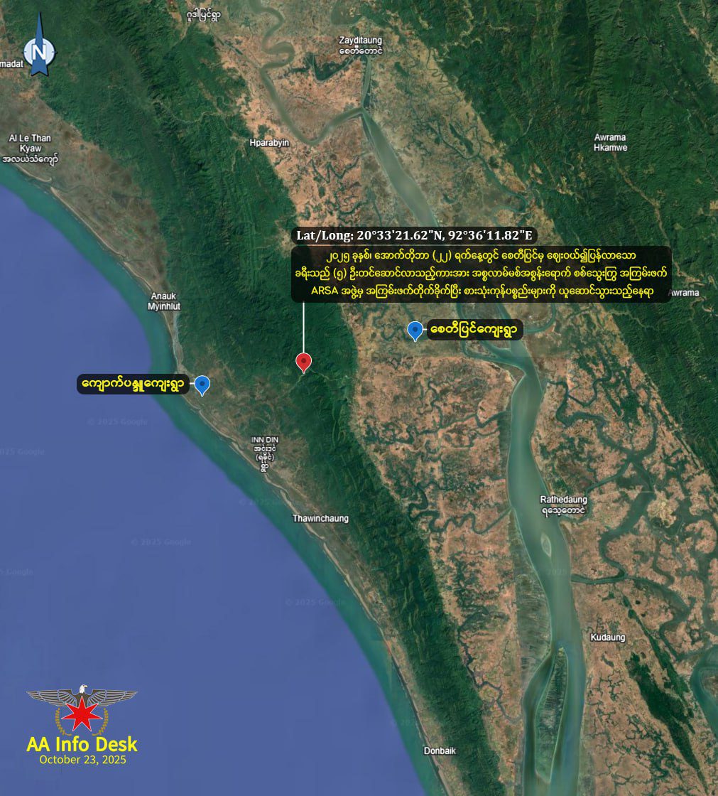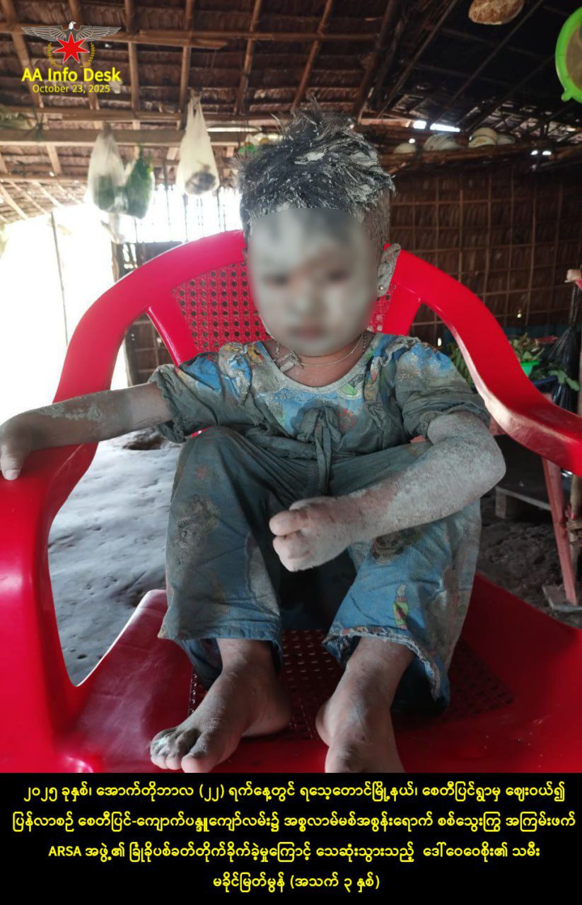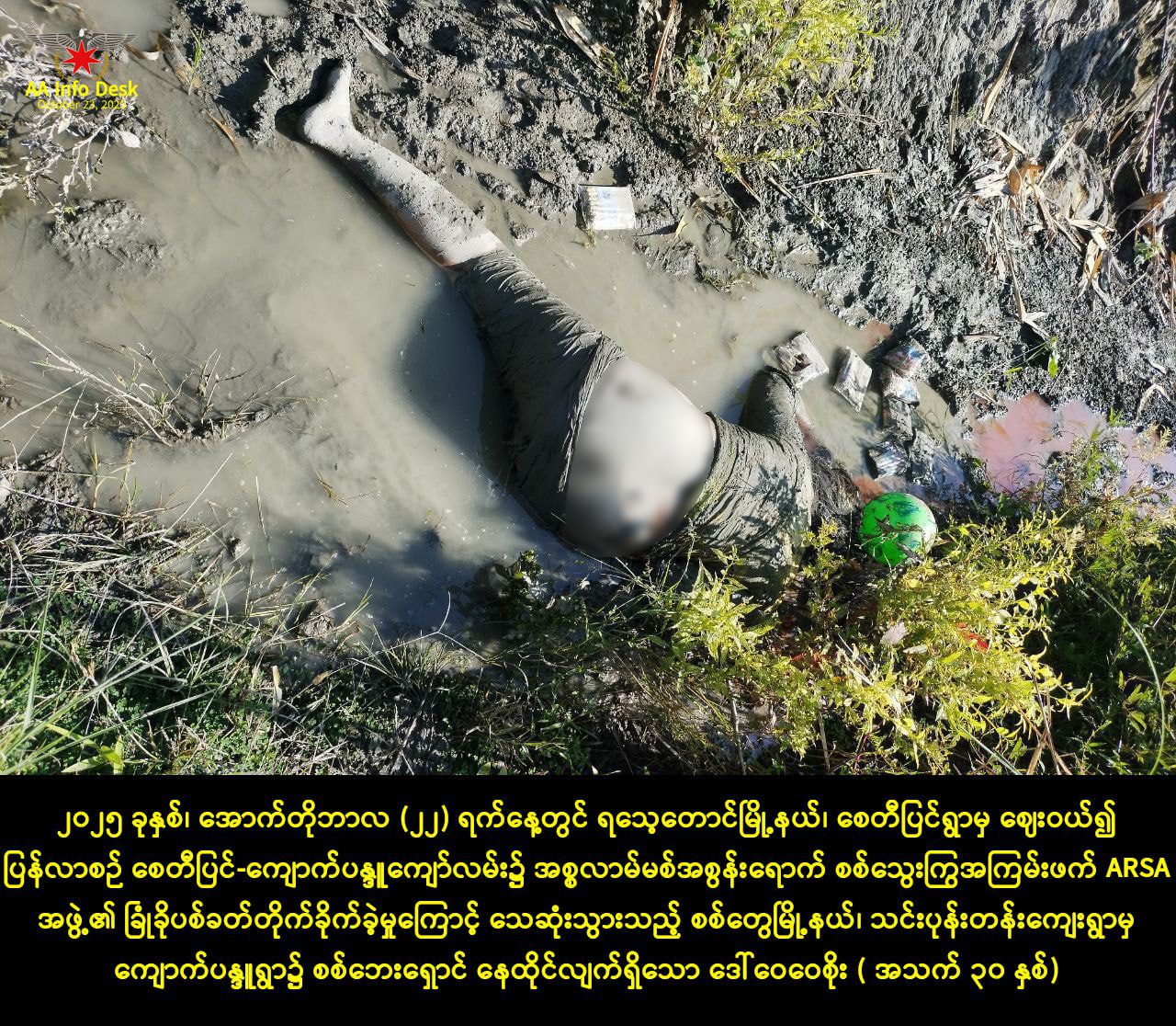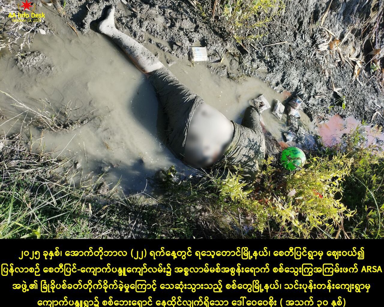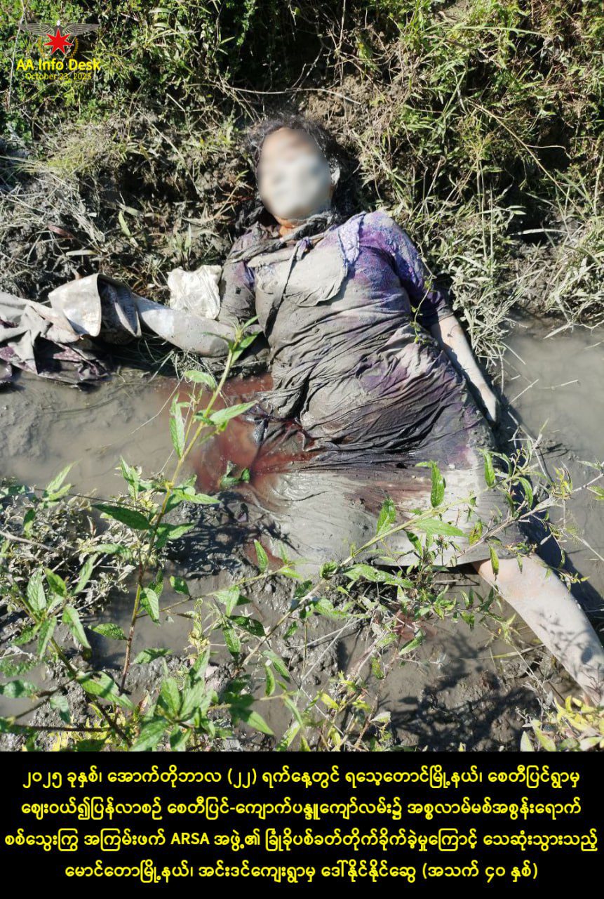 ARSA တပ်ဖွဲ့ဟာ အပြစ်မဲ့ အရပ်သား အမျိုးသမီး ၂ ယောက်ကို ပစ်ခတ်သတ်ဖြတ်သွားပြီး (၃) နှစ်အရွယ် ကလေးငယ်က သေဆုံးသူ မိခင်ဘေးမှာ ကျန်ရှိကာ အမျိုးသား ၂ ယောက်ကတော့ ဒဏ်ရာတွေနဲ့ ထွက်ပြေးလွတ်မြောက်လာခဲ့တယ်လို့ AA က ဆိုပါတယ်။