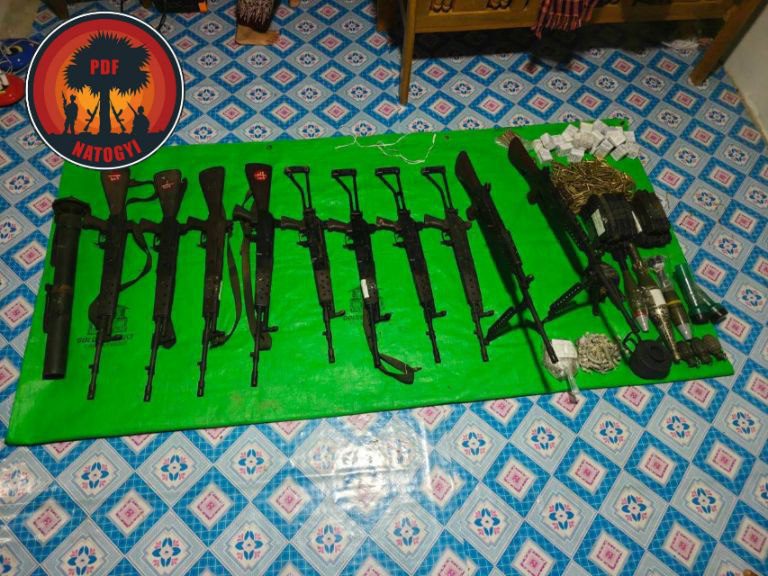 တိုက်ပွဲကနေ MA -1သေနတ် ၆ လက် ၊ MA-2 သေနတ် ၅လက် ၊ MA-3 သေနတ် ၆ လက် ၊ MA -4 သေနတ် ၁လက် ၊ RPG ၁လက် ၊ ငါးကြင်းမြှီး ၂လက် ၊ ၆၀မမ ပြောင်းတို သေနတ် ၃ လက် ၊ ၆၀မမ ပြောင်းရှည် သေနတ် ၁လက် ၊ ငါးကြင်းမြှီးပြောင်း ၁ခု ၊ ကျည်မျိုးစုံ ၆၀၇၈ တောင့် ၊ ပို့ကျည် ၂၅တောင့် ၊ ၄၀ မမ ၁၅ လုံး ၊ ၆၀မမ ၁၁ လုံး ၊ RPG ၁၂ဖူး ၊ RPG ပို့ယမ်း ၉တောင့် ၊ လျက်ဆားပုလင်း ၁၁လုံး ၊ လက်ပစ်ဗုံး ၄လုံး ၊ M9 သေနတ်၂လုံး Drone ၂စီး ၊ Drone Shooter ၂ခု ၊ ကျောပိုး Jammer ၁ခု ၊ Jammer အကြီး ၁ခု ၊ ကား ၃စီး ၊ Drone ဗုံးသီး ၂ဖာ နဲ့ ကျည်ဘောက်အစုံ ၅၆ဘောက် တို့ကို တော်လှန်ရေးတပ်တွေ သိမ်းဆည်းရရှိခဲ့ပါတယ်။