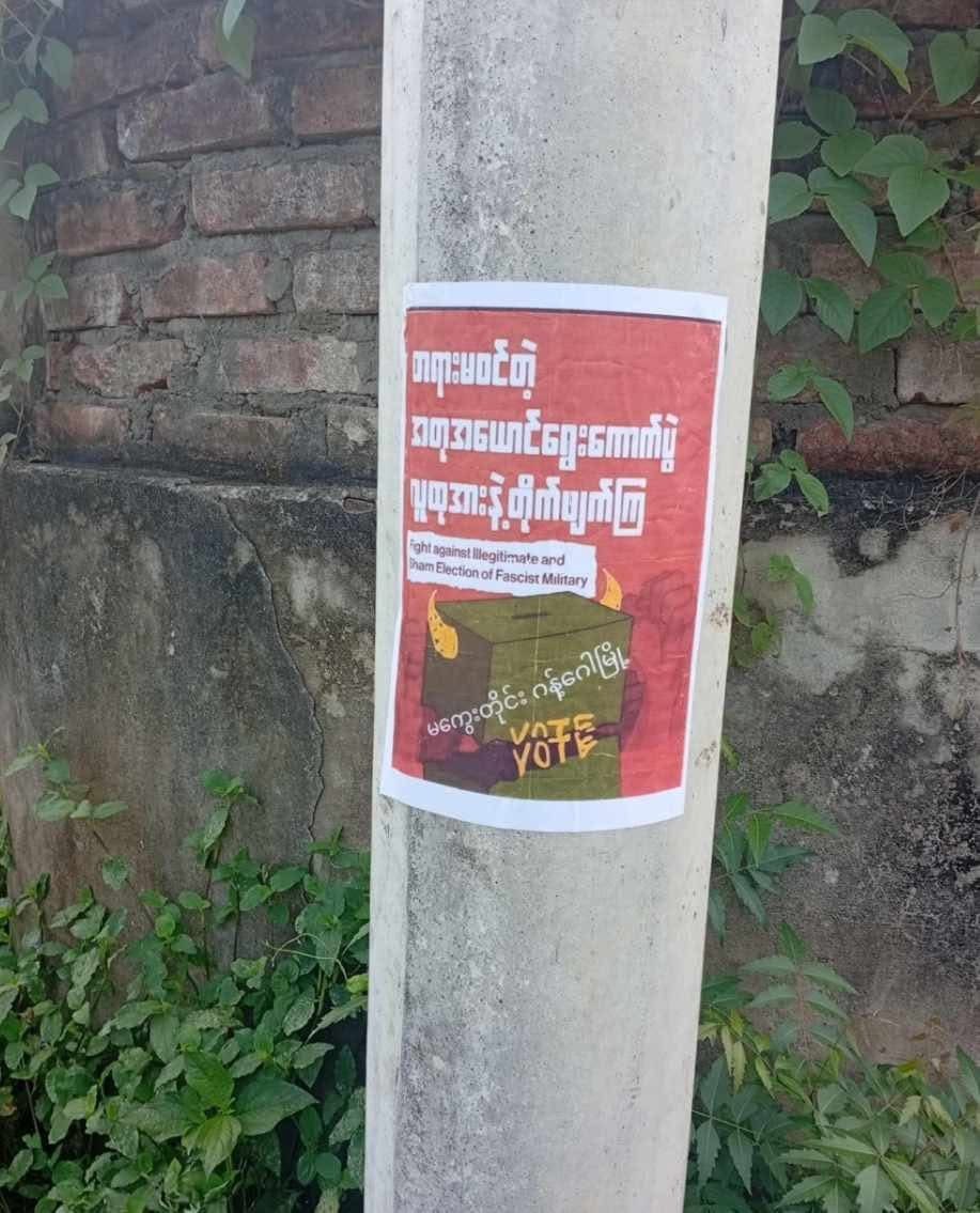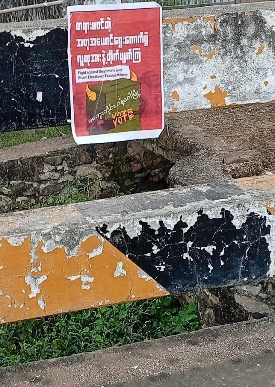 မြို့ထဲက အခြားနေရာတွေမှာလည်း ရွေးကောက်ပွဲ လက်မခံကြောင်း စာရွက်တွေကပ်ဖို့ လုပ်ဆောင်ခဲ့ပေမယ့် အကြမ်းဖက်စစ်အုပ်စုရဲ့ လုံခြုံရေးတွေက အချိန်ပြည့်ရှိနေတာကြောင့် လုပ်ဆောင်လို့ရတဲ့နေရာတွေမှာပဲ ပြုလုပ်ပြီး မှတ်တမ်းတင်ခဲ့တာဖြစ်တယ်လို့ သိရပါတယ်။