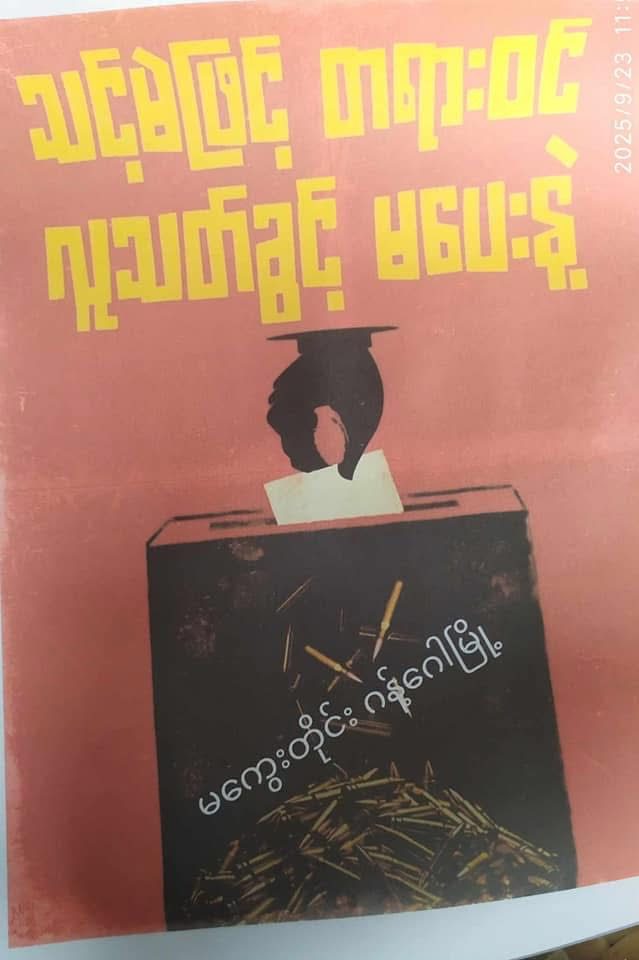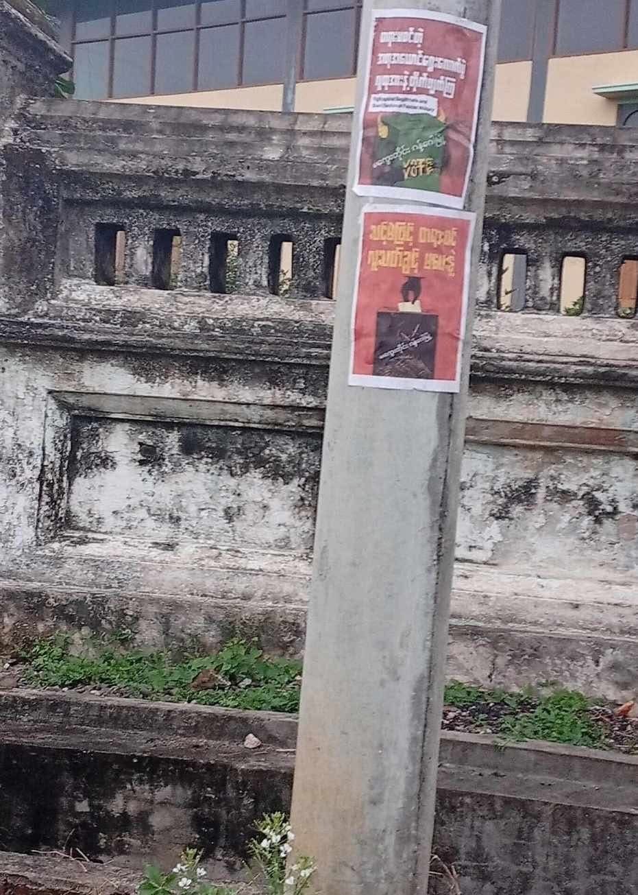 မကွေးတိုင်း၊ ဂန့်ဂေါမြို့ပေါ်မှာ လုံခြုံရေးတင်းကျပ်ထားတဲ့ကြားက အကြမ်းဖက်စစ်အုပ်စုရဲ့ အတုအယောင်ရွေးကောက်ပွဲလက်မခံကြောင်း စာရွက်တွေကို မြို့ထဲက နေရာအချို့မှာ ကပ်ပြီး အသံတိတ်ဆန္ဒပြမှုတစ်ခု ပြုလုပ်ခဲ့တယ်လို့ သိရပါတယ်။
