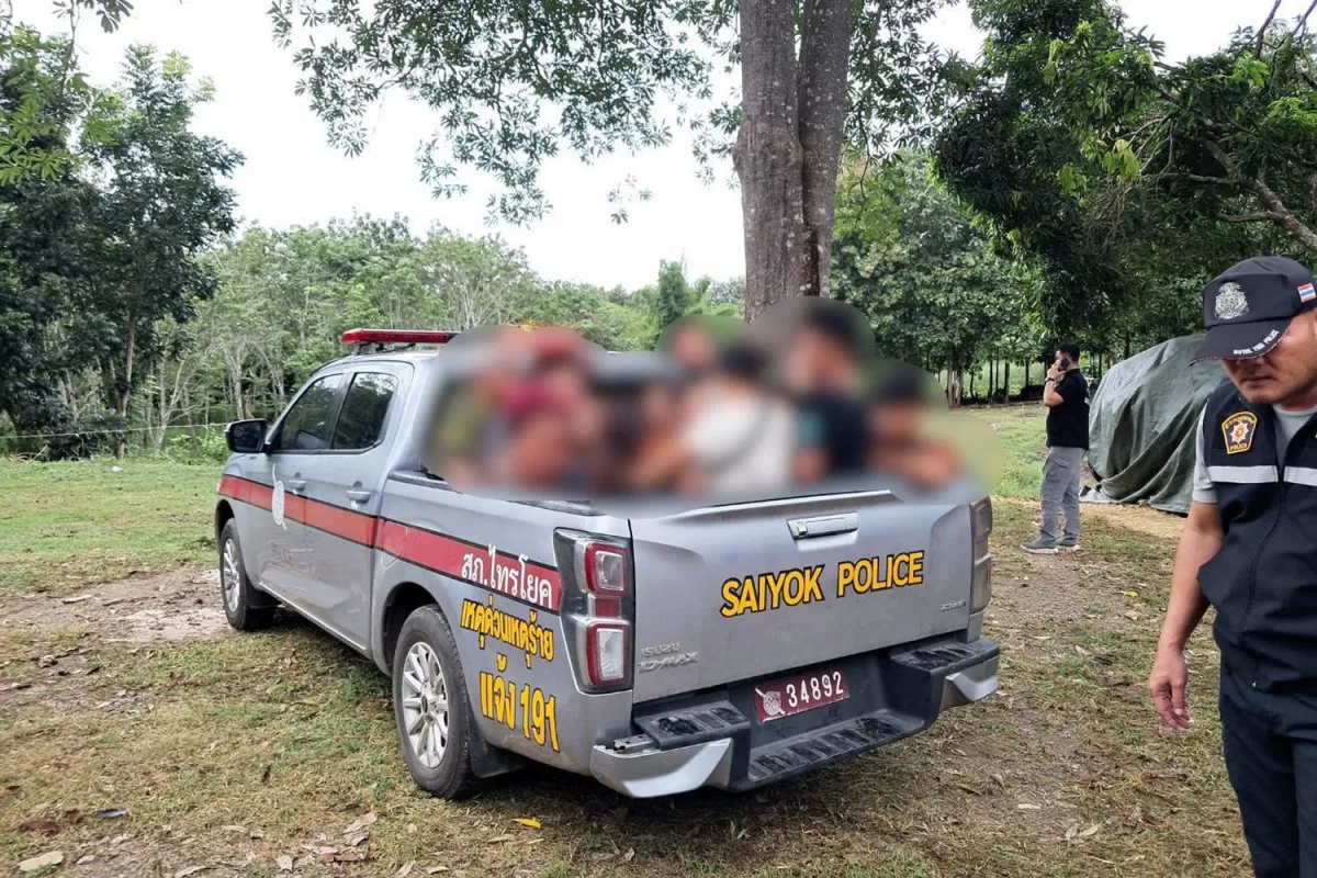 အင်္ဂါနေ့က Kanchanburi တွင် ဖမ်းဆီးမိသော တရားမဝင် မြန်မာအလုပ်ရှာဖွေသူ ၂၅ ဦးအနက် အချို့ကို ရဲတပ်ဖွဲ့က ဖမ်းမိပြီးနောက် ဖမ်းဆီးခဲ့သည် (ဓာတ်ပုံ 1st Army Area Facebook Page)