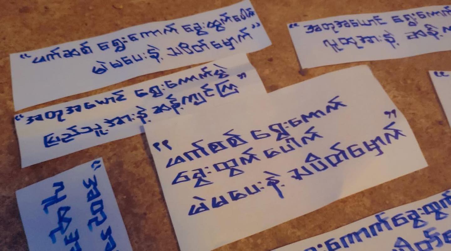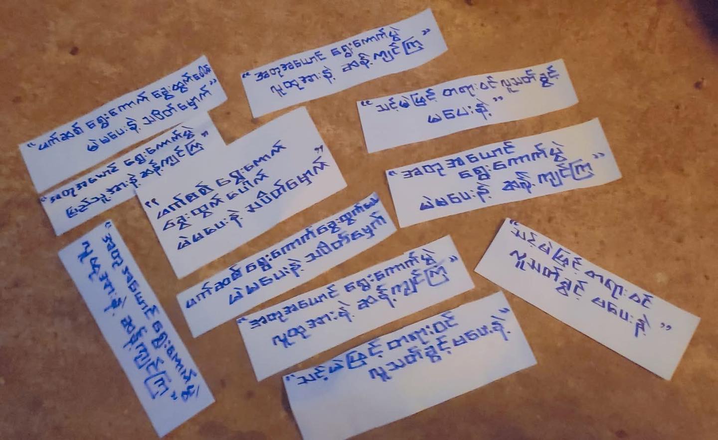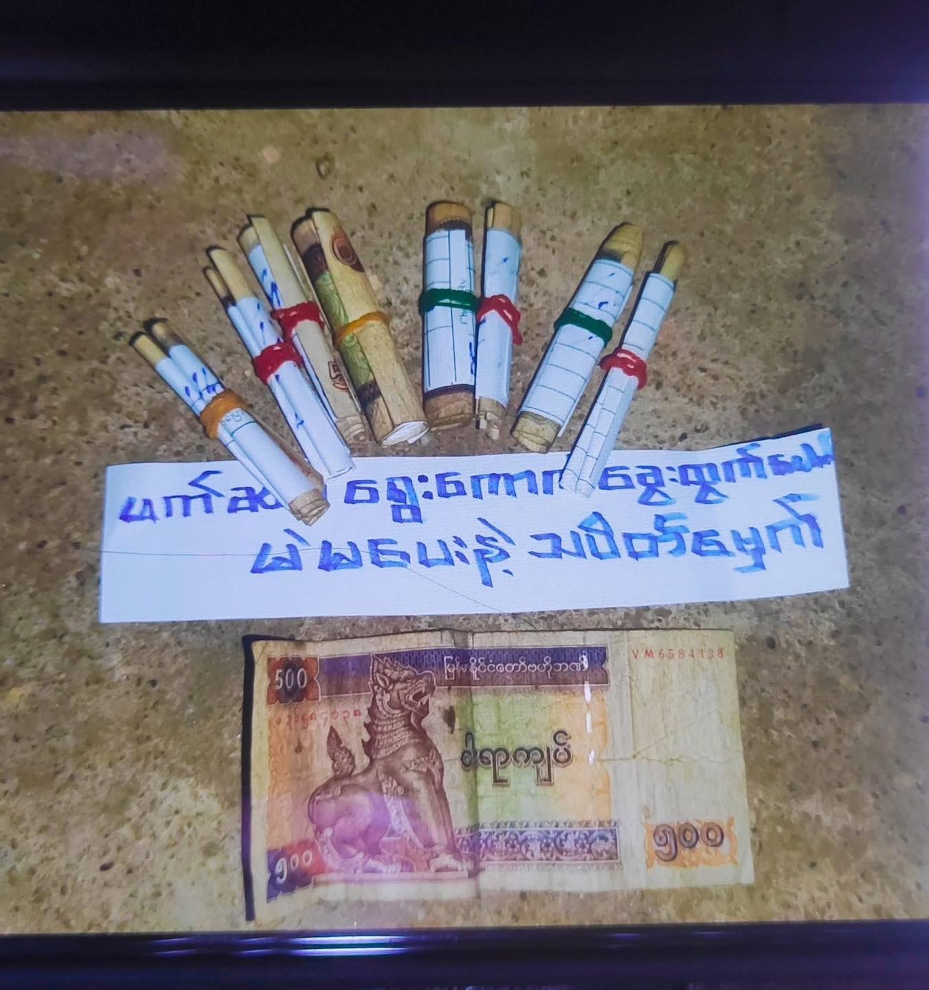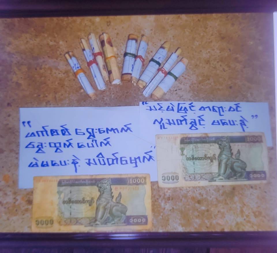 ပံ့သကူ မုန့်ဖိုးနဲ့အတူ “သင့်မဲဖြင့် တရားဝင်လူသတ်ခွင့်မပေးနဲ့” ၊ “ဖက်ဆစ်ရွေးကောက် ခွေးတိုးပေါက် မဲမပေးနဲ့ သပိတ်မှောက်” ၊ “အတုအယောင် ရွေးကောက်ပွဲ လူထုအားနဲ့ ဆန့်ကျင်ကြ” စတဲ့ စာသားတွေကို ဖြန့်ဝေခဲ့တာ ဖြစ်ပါတယ်။