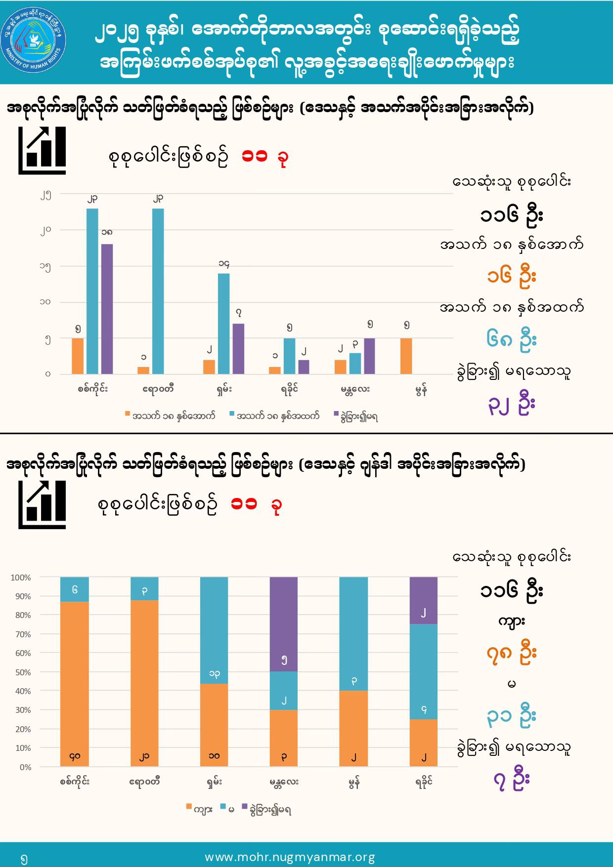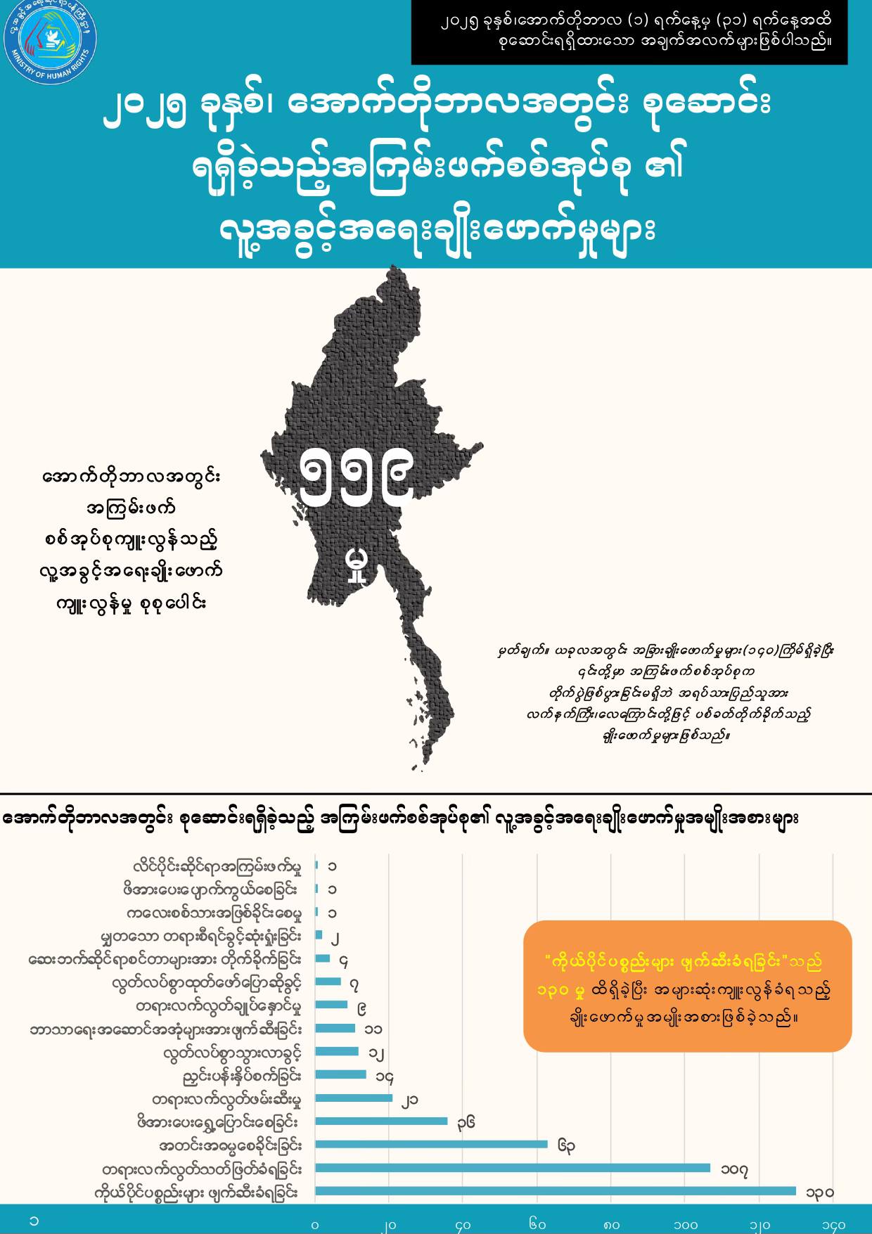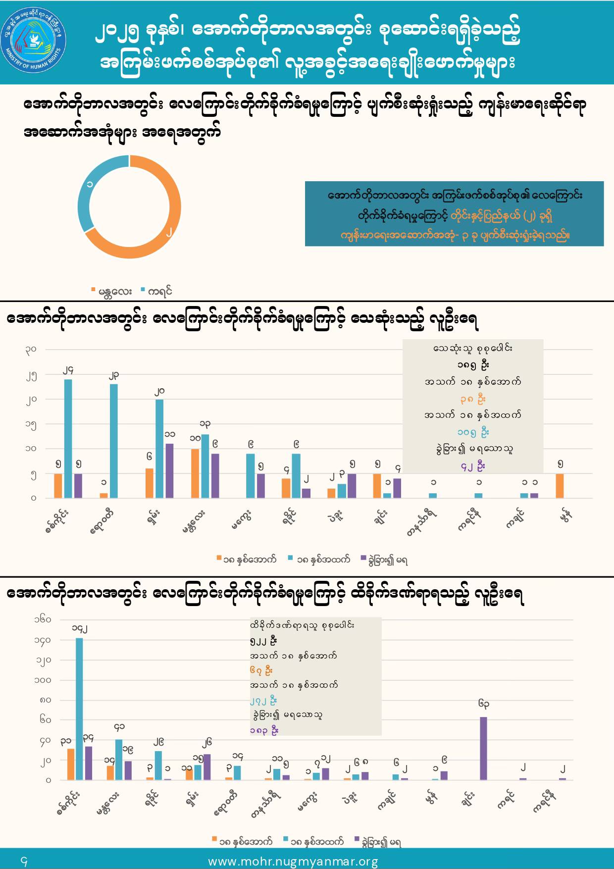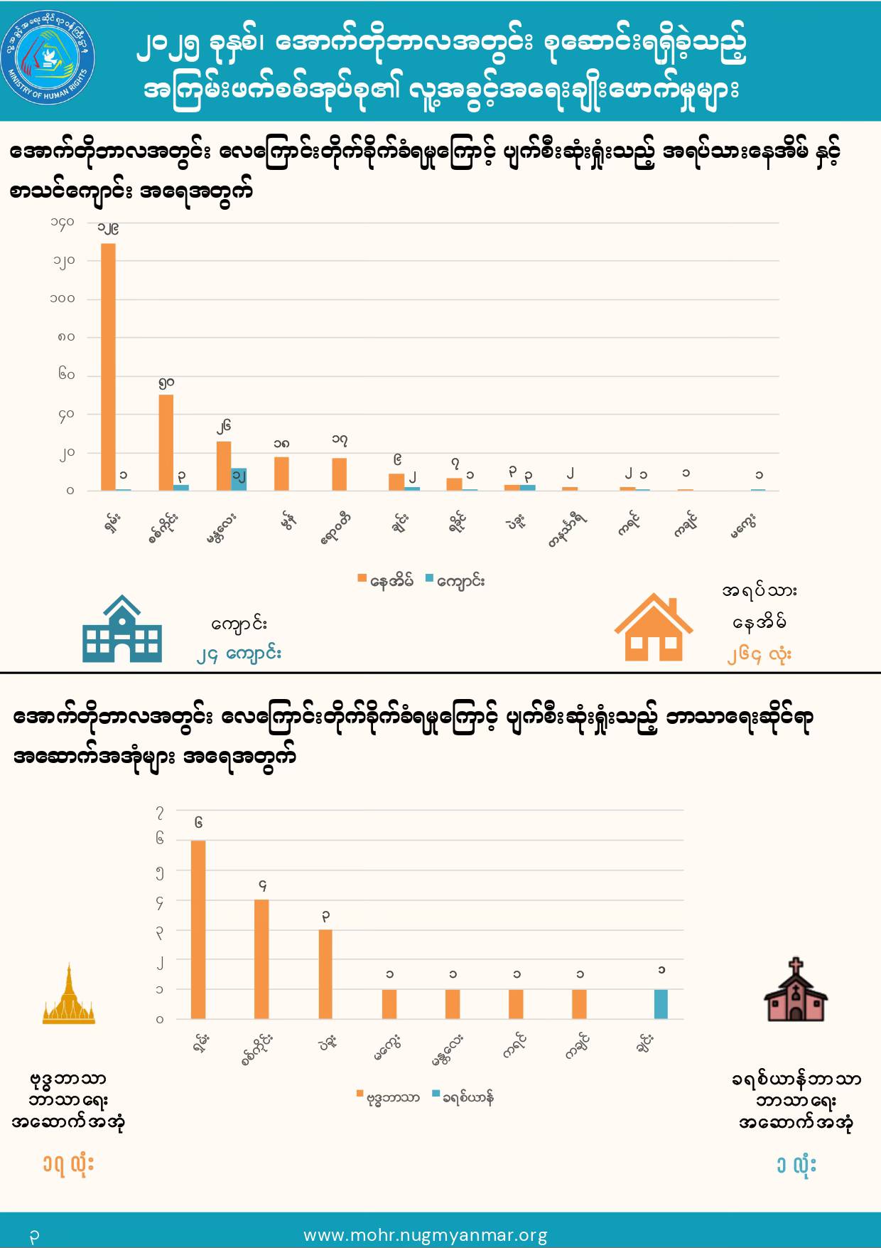 ပြီးခဲ့တဲ့လအတွင်း စစ်တပ်ရဲ့ လေကြောင်းတိုက်ခိုက်မှုအပေါင်း အကြိမ် ၂၅၀ ကြောင့် ပြည်သူ ၁၈၅ ယောက် သေဆုံးခဲ့ကာ ဒဏ်ရာရသူပေါင်း ၅၂၂ ယောက်ရှိခဲ့တယ်လို့ ထုတ်ပြန်ထားပါတယ်။ အဆိုပါ သေဆုံးသူတွေထဲမှာ အသက် ၁၈ နှစ်အောက် ကလေး ၃၈ ယောက် ပါဝင်ခဲ့တယ်လို့ သိရပါတယ်။