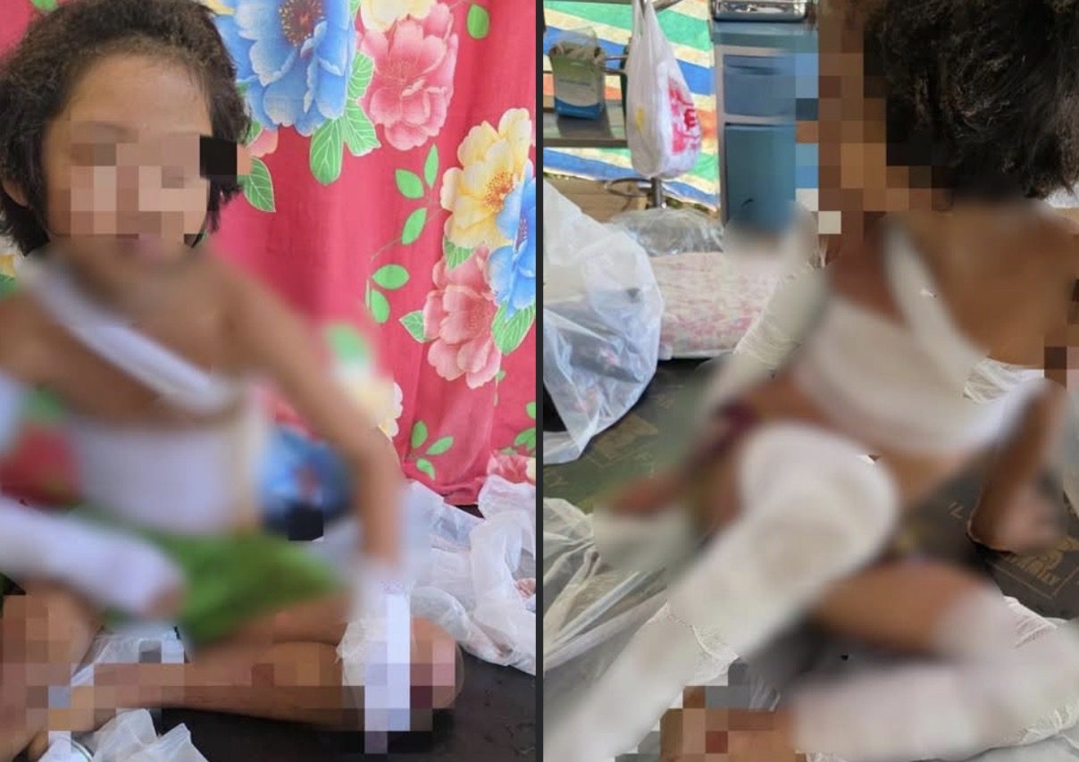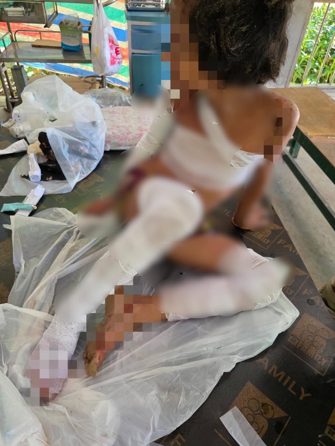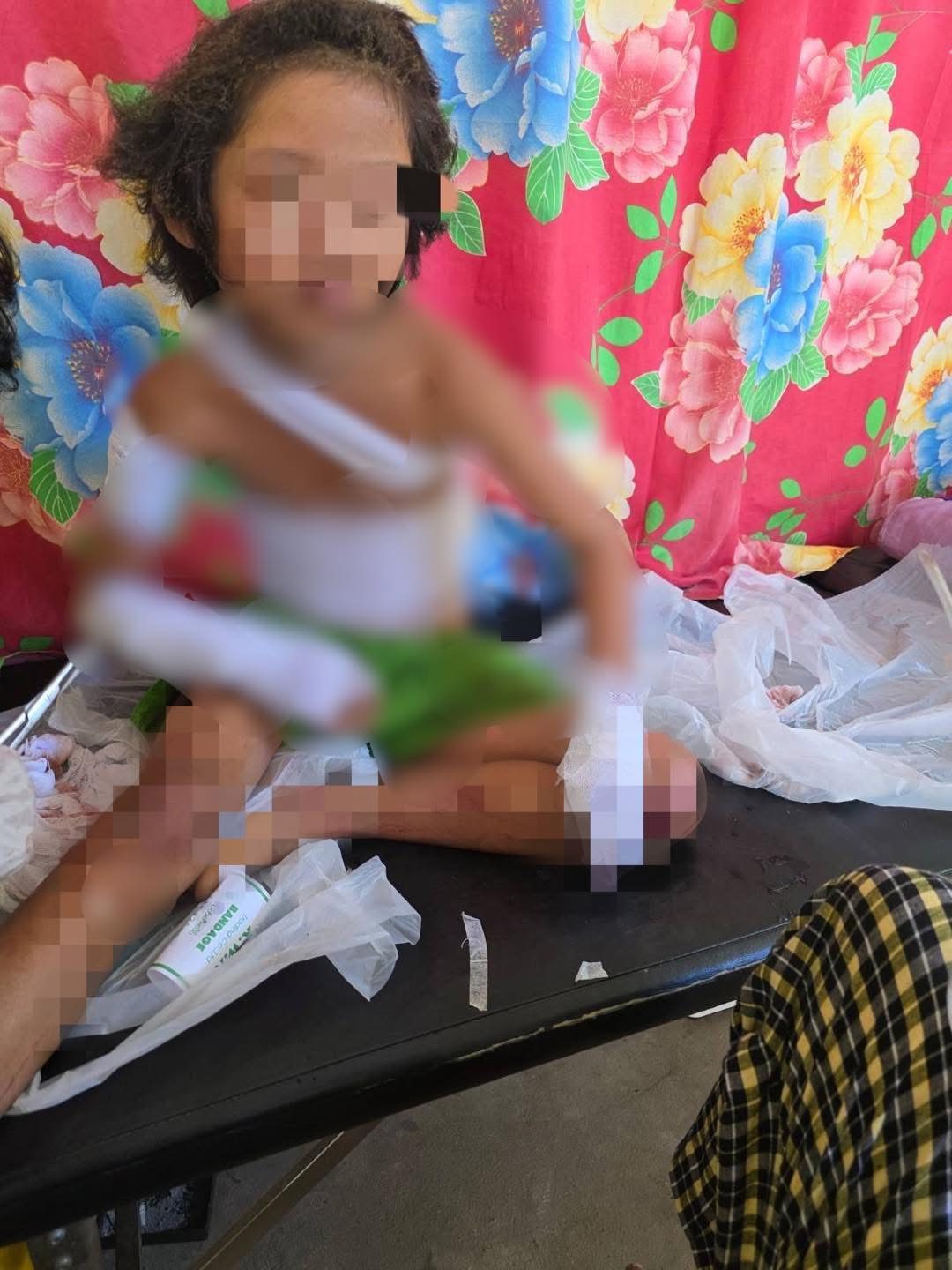 စစ်အုပ်စု ဗုံးကြဲမှုကြောင့် ထိမှန်ဒဏ်ရာရခဲ့သည့် ၁၀ နှစ်အရွယ် အမြွှာညီအစ်မ (ဓာတ်ပုံ ဒေသခံ)