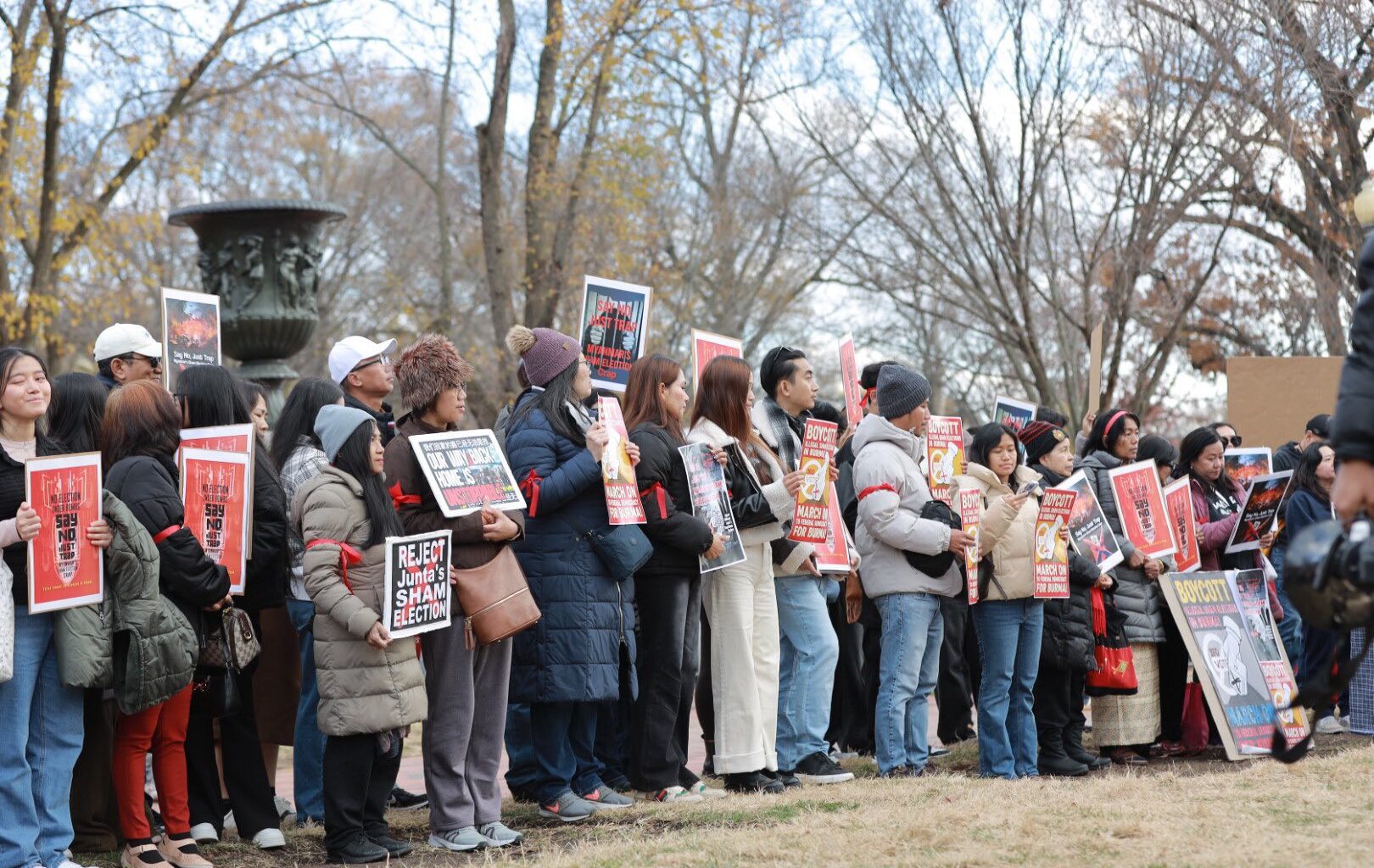အကြမ်းဖက် မြန်မာစစ်တပ်ရဲ့ အတုအယောင် ရွေးကောက်ပွဲကို လက်မခံကြောင်း အမေရိကန်နိုင်ငံရောက် မြန်မာတွေက နိုဝင်ဘာ ၂၂ ရက်မှာ သမ္မတရဲ့ အိမ်ဖြူတော်ရှေ့မှာ သွားရောက်ဆန္ဒပြခဲ့ပါတယ်။