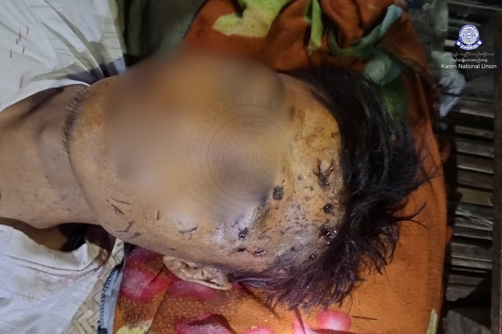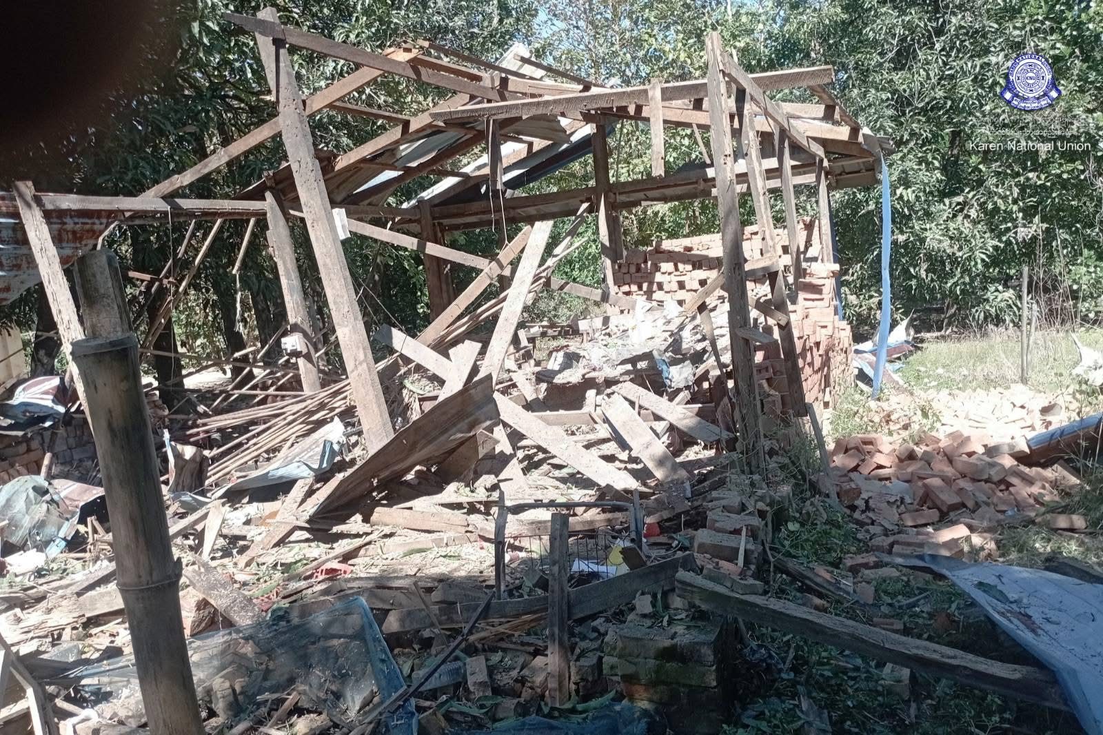 လက်နက်ကြီးနဲ့ ဒရုန်းပစ်ခတ်မှုကြောင့် သေဆုံးခဲ့သည့် ပြည်သူ ၁ဦးနှင့် နေအိမ် ထိခိုက်ပျက်စီးမှုများ (ဓာတ်ပုံ KNU)