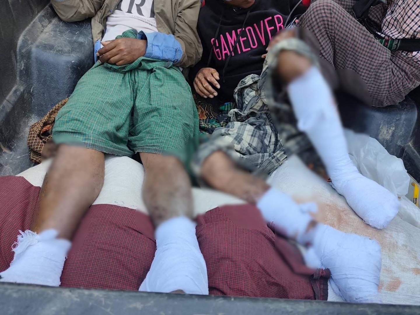 “နှစ်ယောက်တော့ ခြေထောက်နှစ်ဖက်လုံး ထိခိုက်ထားတော့ ဆေးကုသမှုခံယူနေပါတယ်။ ကျန်တစ် ယောက်ကတော့ အရမ်းမများတော့ ဒေသဆေးဆရာတွေနဲ့ အဆင်ပြေတယ်။ ၂ ယောက်ကတော့ ဆေးရုံ ပို့ပေးထားရတယ်” လို့ လူသားချင်းစာနာထောက်ထားရေးနှင့် ဘေးအန္တရာယ်ဆိုင်ရာ စီမံခန့်ခွဲရေးဌာန ပေါက်မြို့နယ် တာဝန်ရှိသူက မောင်းကိုပြောပါတယ်။