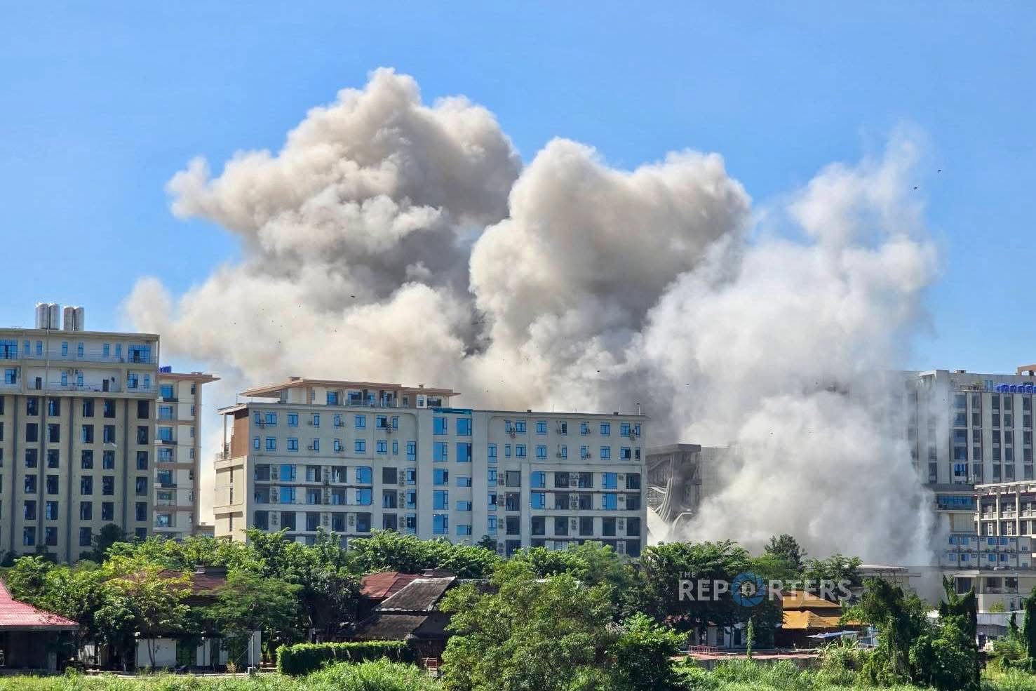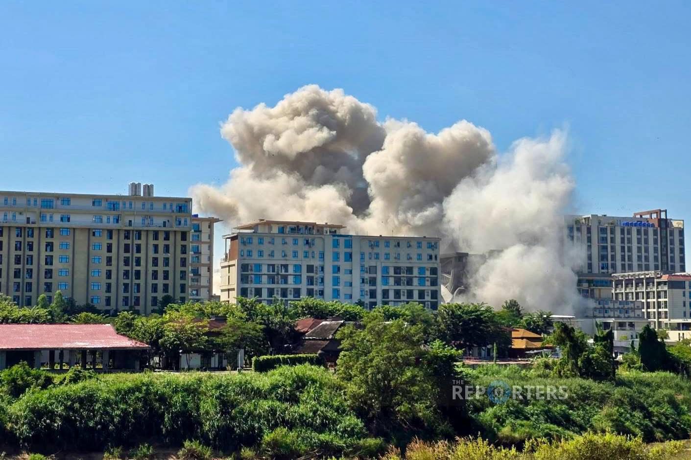 ထိုင်း-မြန်မာနယ်စပ် မဲဆောက်မြို့တစ်ဖက်ကမ်း ရွှေကုက္ကိုလ်နယ်မြေရှိ အွန်လိုင်းလိမ်လည်လုပ်ငန်းတွေ လုပ် ဆောင်ရာမှာ အသုံးပြုခဲ့တဲ့ ၁၂ ထပ်အဆောက်အအုံတစ်ခုကို အကြမ်းဖက်စစ်တပ်က ဒီနေ့မှာ ဖောက်ခွဲဖြိုချပြခဲ့ပါတယ်။