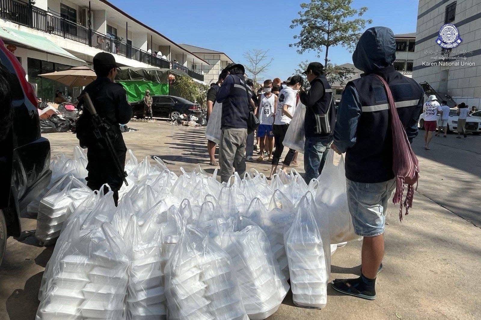အဆိုပါ ခြံဝင်းအတွင်းကနေ မထွက်ခွာလိုဘဲ ဆက်လက်နေထိုင်နေတဲ့ နိုင်ငံခြားသားတွေအနေနဲ့ အစားအစာ ပြတ်လပ်မှုရှိနေတာမို့ လက်ရှိမှာ KNU က စားသောက်ရေးအတွက် ထမင်းဘူးတွေ ပံ့ပိုးပေးနေတယ်လို့ ဆိုပါတယ်။