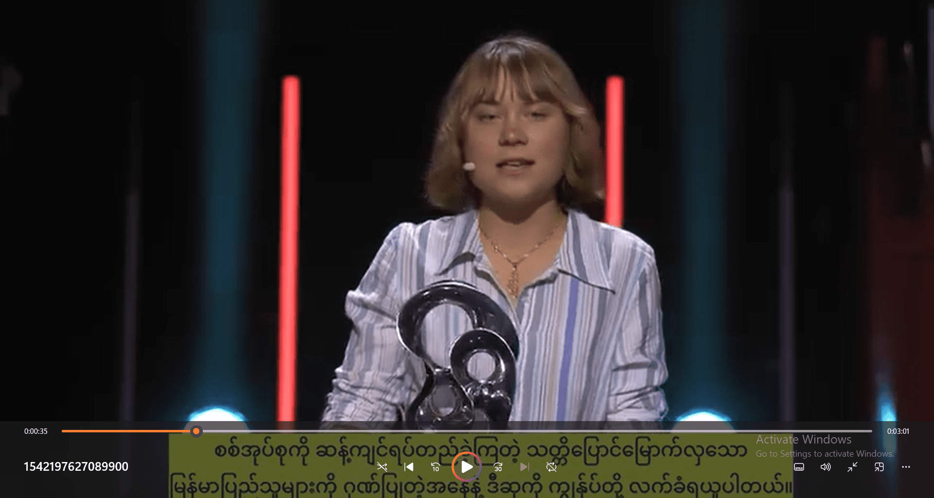 ဂရက်တာ သွန်းဘာ့ဂ်က မြန်မာစစ်တပ်ရဲ့ ရက်စက်ကြမ်းကြုတ်မှုတွေ၊ မြန်မာပြည်သူတွေရဲ့ စွန့်လွှတ်ပေးဆပ်ရမှုတွေအကြောင်း ပြောရင်း နောက်ဆုံးမှာ “ကမ္ဘာကြီးက စောင့်ကြည့်နေပါတယ်။ မြန်မာပြည်သူလူထုရဲ့ တော်လှန်ရေးကသာ အောင်ပွဲခံပါလိမ့်မယ်” လို့ ပြောခဲ့ပါတယ်။