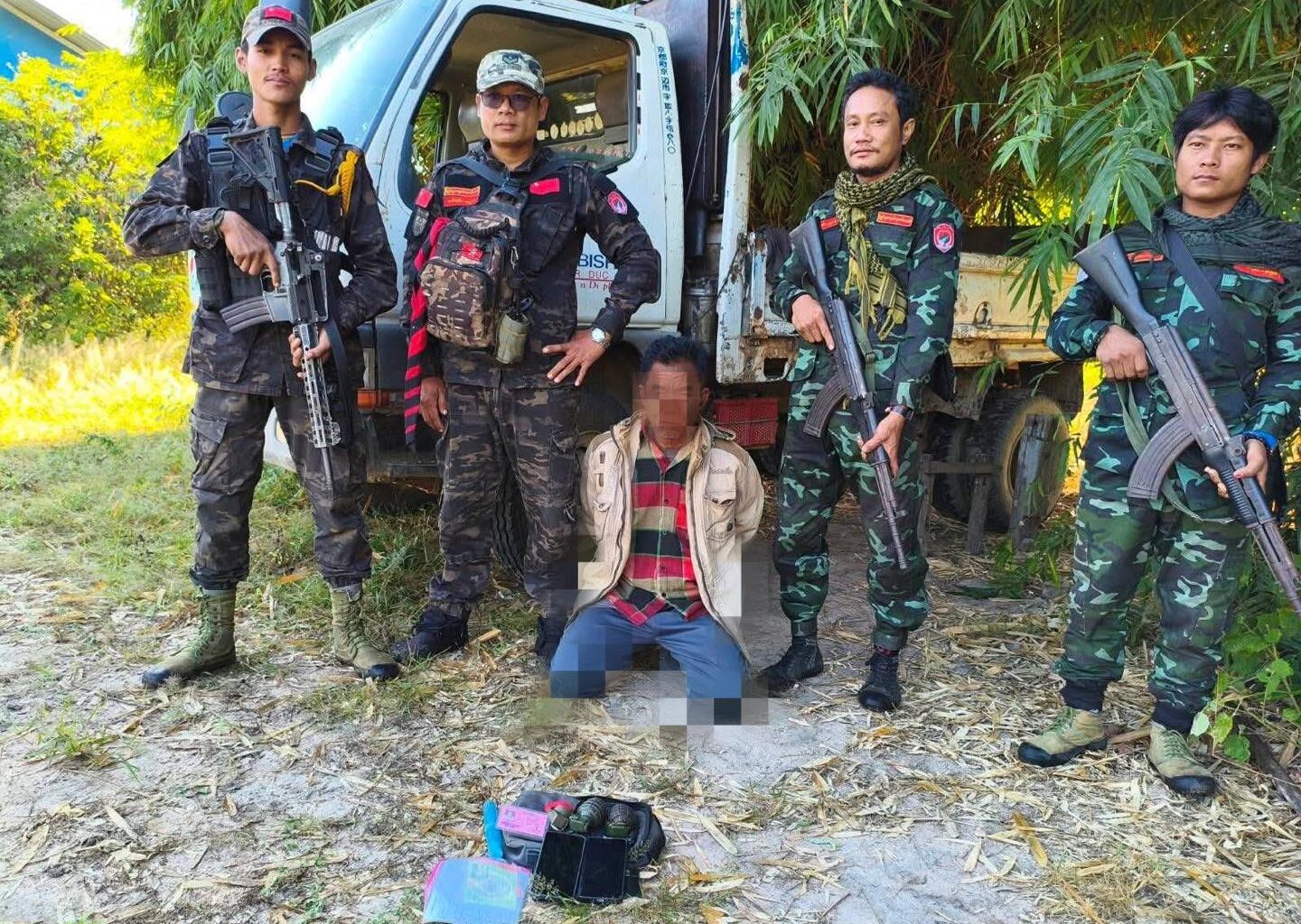 ပဲခူးတိုင်း၊ ရေတာရှည်မြို့နယ်မှာ တပ်ပိုင်မြေအတွင်း သီးစားလုပ်ကိုင်နေသူတွေဆီက ပိုက်ဆံလာကောက်တဲ့ တပ်ကြပ်ကြီး မြင့်လွင်ဆိုသူကို လက်ပစ်ဗုံးတွေနဲ့တကွ အရှင်ဖမ်းဆီးရမိခဲ့ကြောင်း ရေတာရှည်မြို့နယ်အခြေစိုက် တပ်ရင်း-၃၅၀၄ တာဝန်ရှိသူက မောင်းကိုပြောပါတယ်။