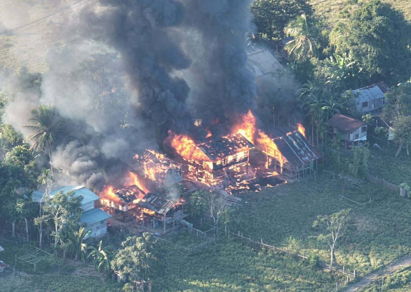 ပုံစာ – မော်လိုက်မြို့နယ်အတွင်းရှိ ကျေးရွာတစ်ရွာအား စစ်အုပ်စု မီးရှို့ဖျက်ဆီးနေစဥ်