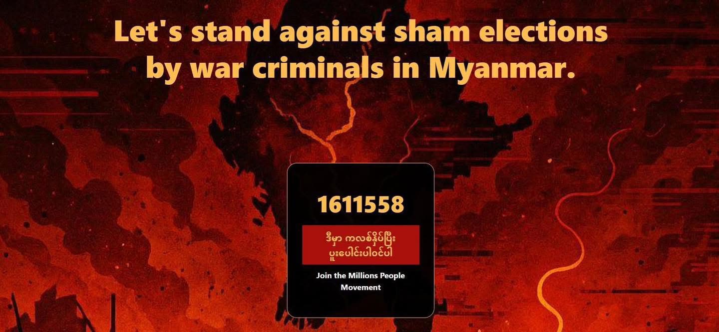 စစ်တပ်ရဲ့ ရွေးကောက်ပွဲကို ဆန့်ကျင်ကန့်ကွက်ကြောင်း ဆန္ဒမဲပေးနိုင်တဲ့ Millions People Movement မှာ ပါဝင်လာတဲ့ ပြည်သူအရေအတွက် တသန်းခွဲကျော်အထိ ရောက်ရှိလာနေပြီလို့ သိရပါတယ်။