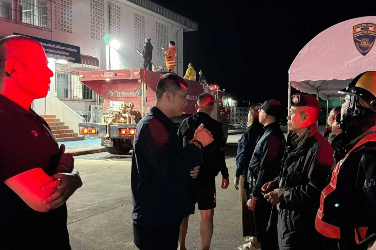 တာ့ခ်ခရိုင် မဲဆောက်ခရိုင် ၃၄၆ နယ်ခြား လှည့်ကင်း ရဲတပ်ခွဲ ဝင်းအတွင်း အင်္ဂါနေ့ ညက တရုတ် အကျဉ်းသားများ အဓိကရုဏ်း ဖြစ်ပွားပြီးနောက် အင်အား ဖြည့်တင်းမှုများ ပြုလုပ်ခဲ့သည်။ (ဓာတ်ပုံ Assawin Pinitwong)