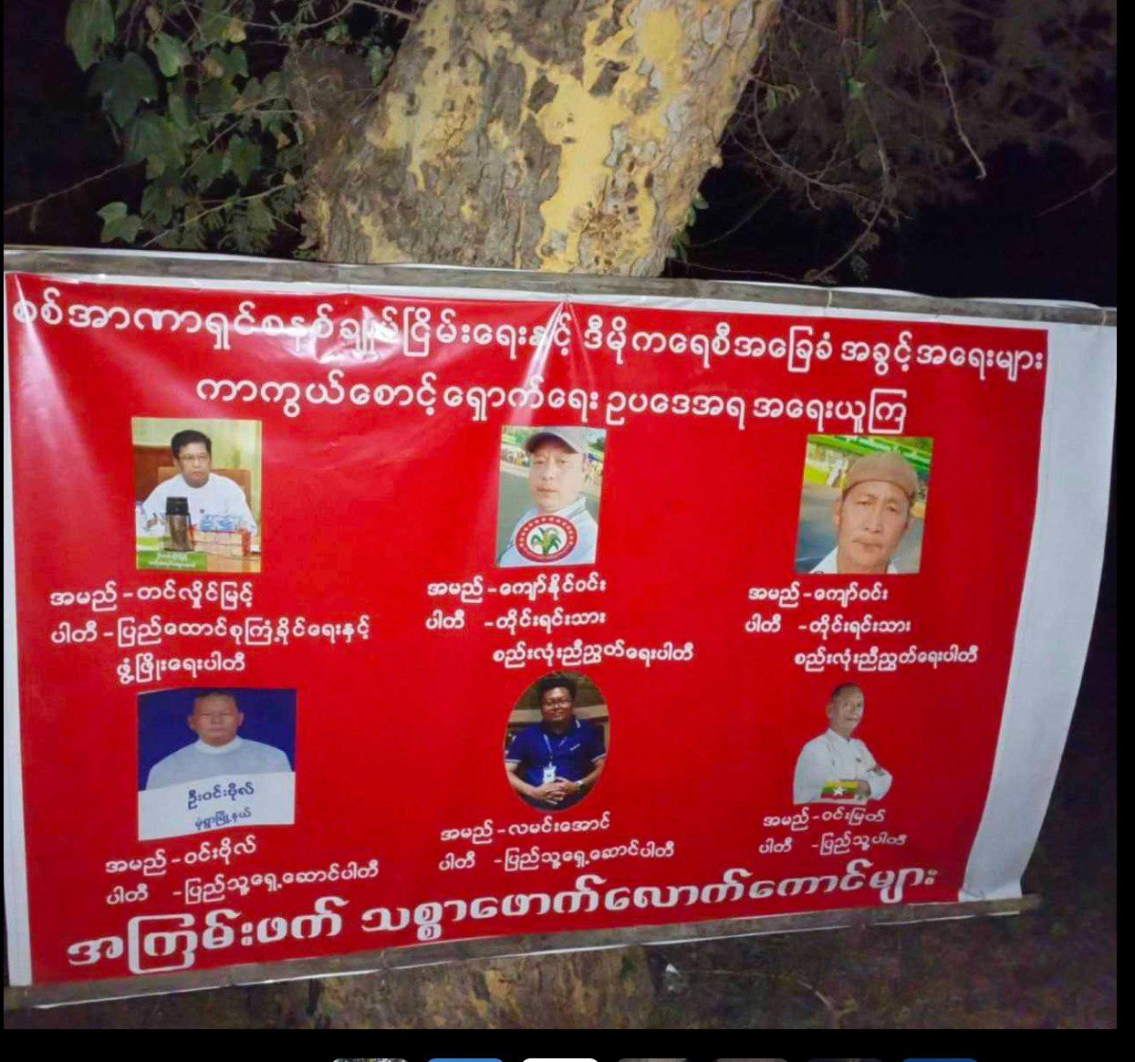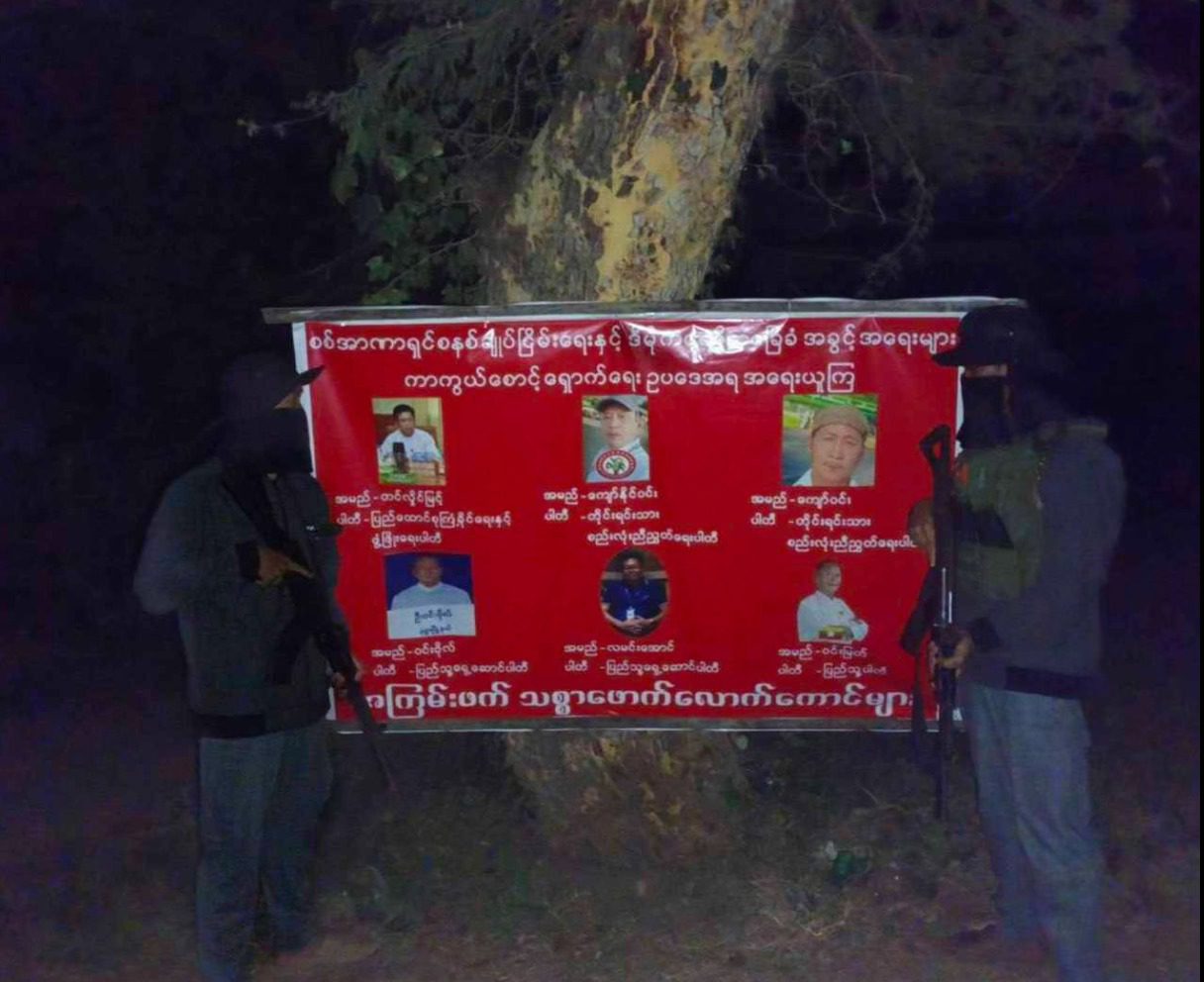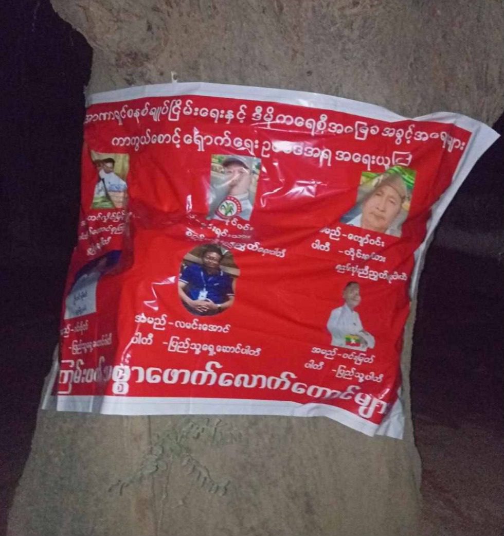 အကြမ်းဖက်စစ်အုပ်စုရဲ့ ရွေးကောက်ပွဲမှာ ဝင်ရောက်အရွေးခံမယ့်သူများကို အရေးယူမှာဖြစ်ကြောင်း နဲ့ ပြည်သူလူထုအနေနဲ့လည်း ၎င်းတို့ကို social punishment ပြုလုပ်နိုင်ဖို့ အသိပေးသည့်အနေနဲ့ မုံရွာမြို့နယ်အတွင်းရှိ နေရာတော်တော်များများမှာ နယ်မြေခံတော်လှန်ရေးအင်အားစုများက ဒီကနေ့ ဒီဇင်ဘာ ၁၄ ရက်မှာ Vinyl Billboard များထောင်ကာအသိပေးခဲ့တယ်လို့ သိရပါတယ်။