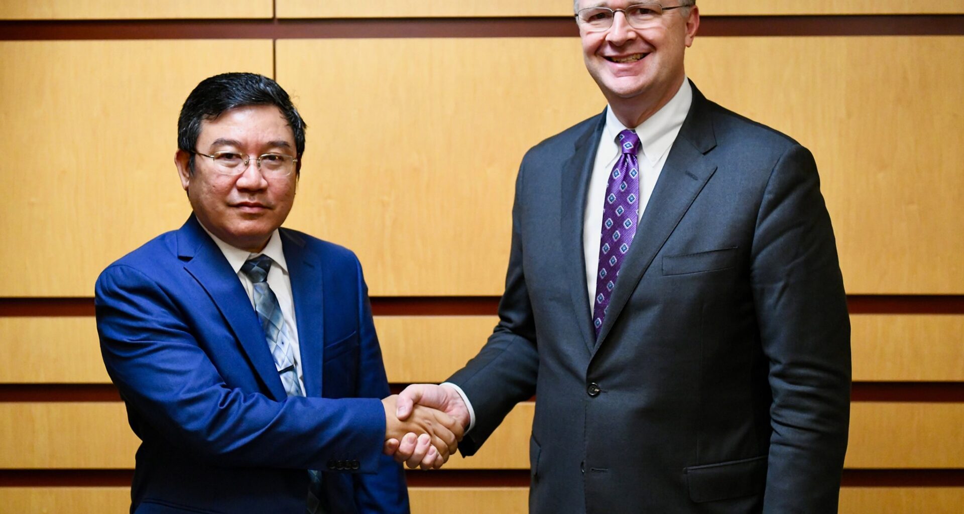 NUG နိုင်ငံခြားရေးဝန်ကြီးဌာန အကြံပေး ဦးမိုးဇော်ဦးနှင့် အမေရိကန် လက်ထောက်နိုင်ငံခြားရေးဝန်ကြီး Daniel J. Kritenbrink တို့ ၂၀၂၂ ခုနှစ်တွင် ဆုံခဲ့စဉ်  (ဓာတ်ပုံ US embassy Yangon)