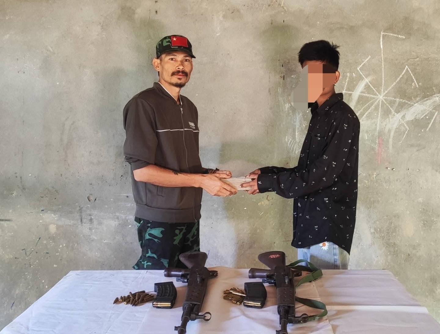 အလင်းဝင်ရောက်လာသူတွေနဲ့အတူ MA 1 သေနတ် ၂လက်နဲ့ ကျည်ဘောက် ၂ခု၊ 5.56 ကျည်အတောင့် ၅၀ ပါဝင်ခဲ့ပြီး ၂ယောက်လုံးကို ဆုကြေးငွေ သိန်း ၃၀ ကျပ်စီ ပေးအပ်ကာ လုံခြုံတဲ့နေရာကို ပို့ဆောင်ပေးခဲ့ပြီးဖြစ်တယ်လို့လည်း လောင်းလုံးသံမဏိလိပ်ပြာတပ်ဖွဲ့ (L.L.S.B.F) က ထုတ်ပြန်ပါတယ်။