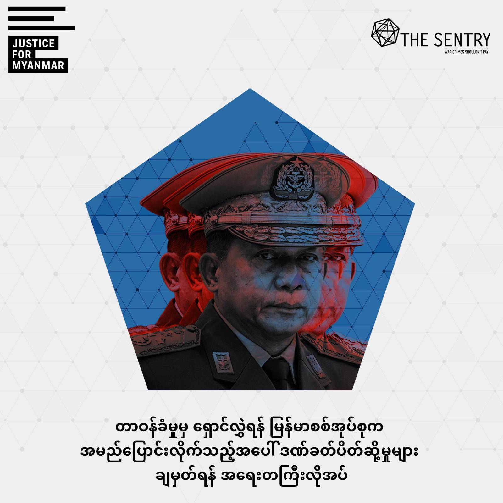 The Sentry ရဲ့ အမှုဆောင်ဒါရိုက်တာ Justyna Gudzowska က “စစ်အုပ်စုဟာ ၎င်းတို့ရဲ့ပုံရိပ်ကို ပြန်လည်တည်ဆောက်နေပြီး၊ ၎င်းတို့အုပ်ချုပ်မှုကို ပုံမှန်အခြေအနေတခုလို ဖြစ်လာစေဖို့ နိုင်ငံရပ်ခြားက အားပေးကူညီသူတွေရဲ့ ပံ့ပိုးမှုကို ရယူ အသုံးချနေပါတယ်။ စစ်ရာဇဝတ်မှုတွေနဲ့ လူသားမျိုးနွယ်အပေါ် ကျူးလွန်တဲ့ ရာဇဝတ်မှုတွေ အတွက် တာဝန်ရှိတဲ့စစ်အုပ်စုကို အကျိုးဖြစ်ထွန်းစေမယ့် နိုင်ငံရေးဝန်ဆောင်မှုတွေ ပေးအပ်ခြင်းဟာ ကြီးလေးတဲ့ ဥပဒေကြောင်းဆိုင်ရာ၊ ကျင့်ဝတ်ဆိုင်ရာ၊ ဂုဏ်သိက္ခာဆိုင်ရာ အန္တရာယ်တွေကို ဖြစ်ပေါ်စေနိုင်ပါတယ်” လို့ ပြောပါတယ်။