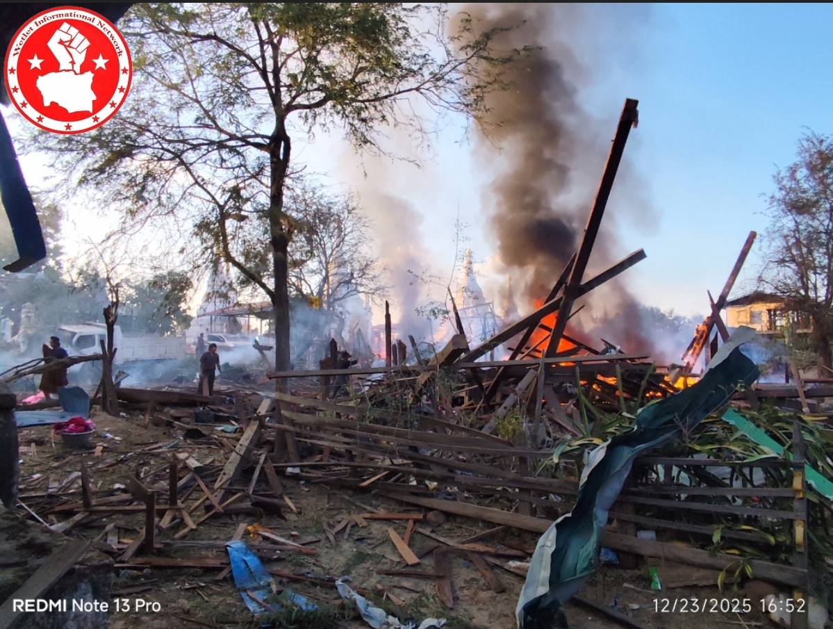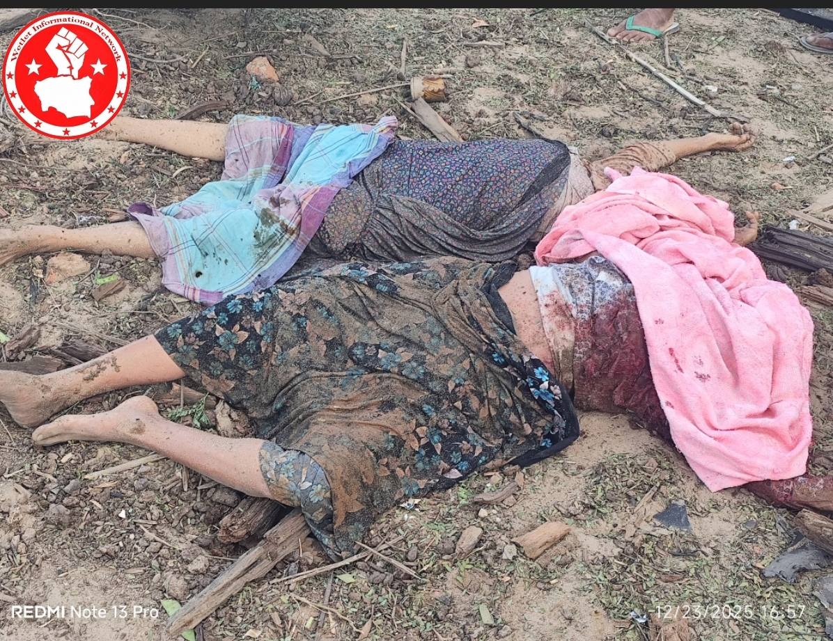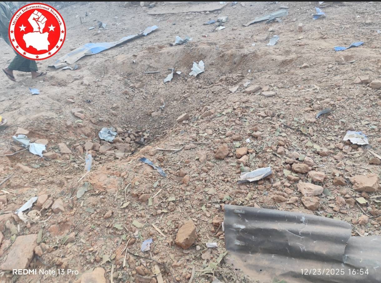 ဒီဇင်ဘာလ ၂၃ ရက် ဒီနေ့ညနေပိုင်းမှာ ဝက်လက်မြို့နယ်အရှေ့ဘက်၊ ငါးပတ်ချောင်းကျေးရွာကို မိတ္ထီလာလေတပ်တက် ဂျက်ဖိုက်တာ ၁ စီးက ပေါင် ၂၀၀ ခန့် ဗုံသီး ၄ လုံး ကြဲချတိုက်ခိုက်ခဲ့တယ်လို့ သိရပါတယ်။