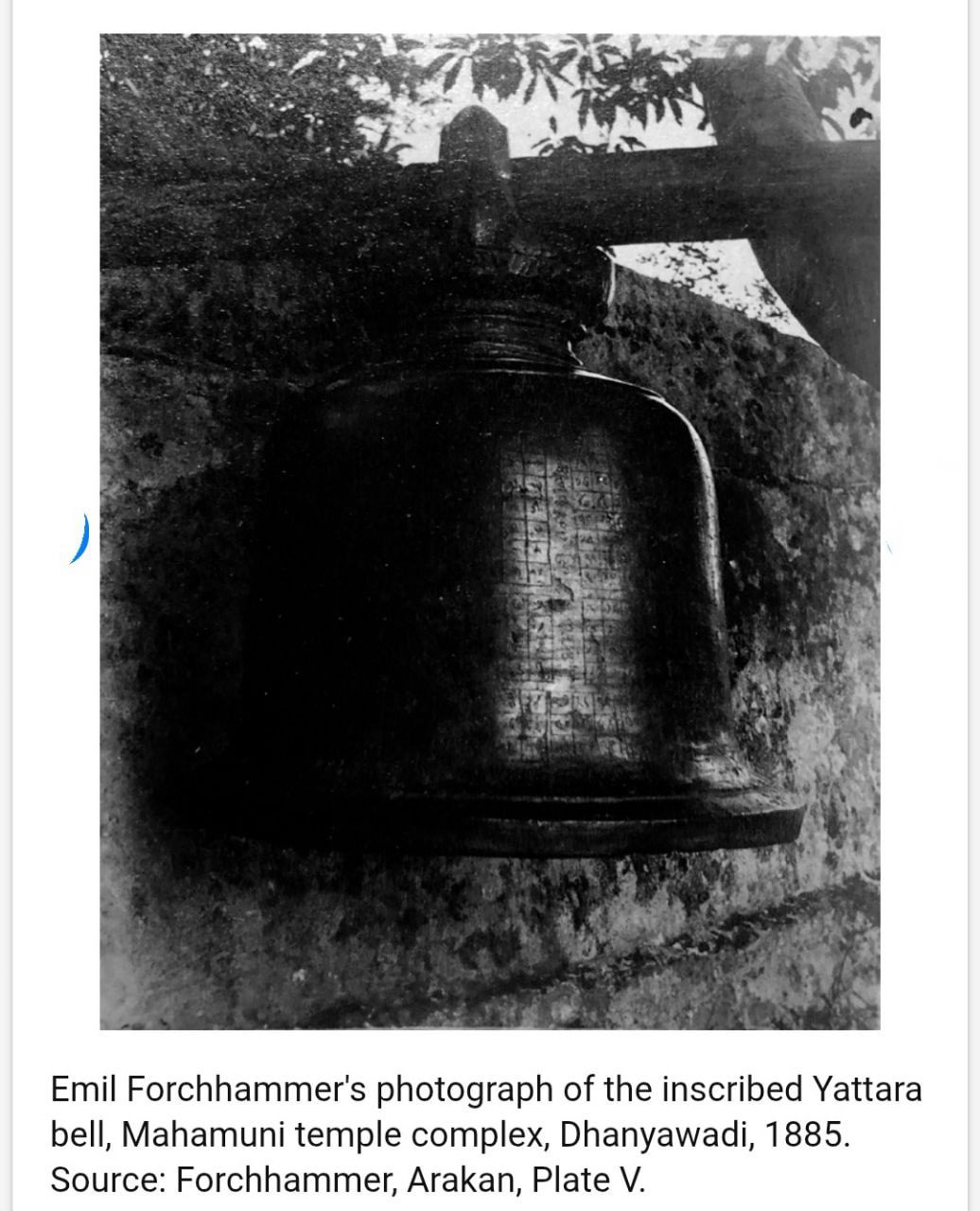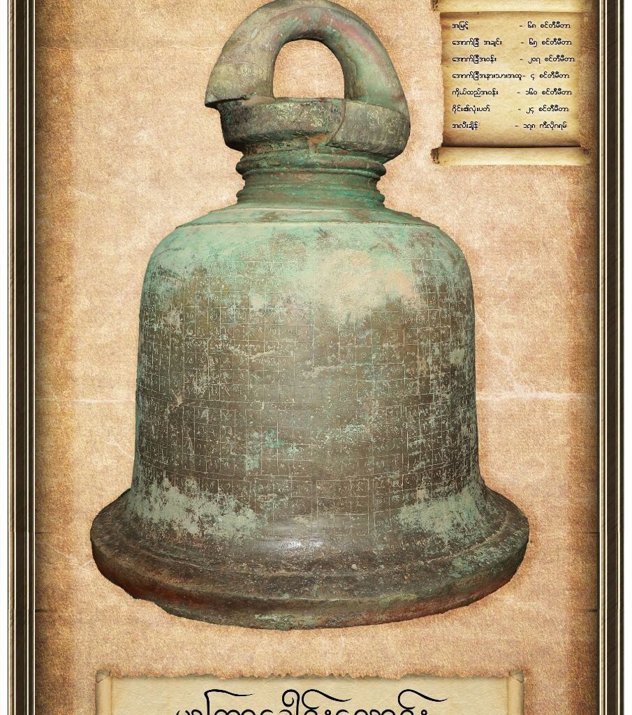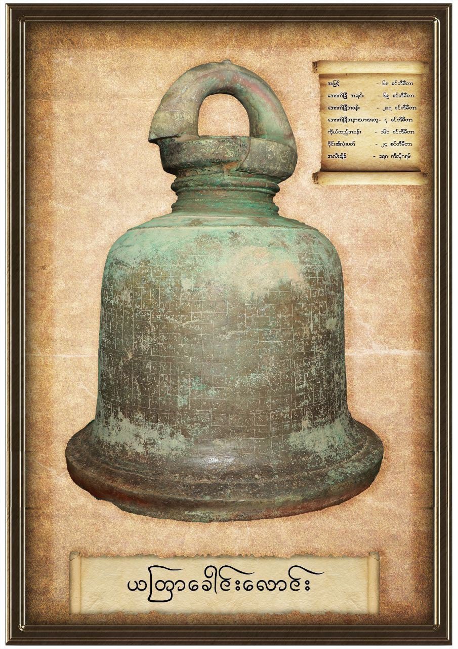 အဆိုပါခေါင်းလောင်းကို ရက္ခိုင်ဘုရင် နရပတိကြီး (၁၆၃၈-၁၆၄၅) လက်ထက်မှာ သွန်းလုပ်ခဲ့တာဖြစ်ပြီး ခေါင်းလောင်းကိုယ်ထည်မှာ ပါဠိ၊ သက္ကတ၊ ရက္ခဝဏ္ဏ ဘာသာစကား ၃ မျိုးနဲ့ အင်းအိုင်ခါးလှည့်တွေကို စီမံထားရှိထားတယ်လို့ သိရပါတယ်။