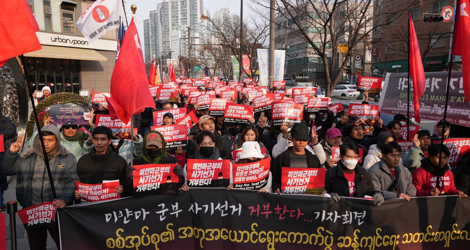 တောင်ကိုးရီးယားနိုင်ငံရောက် မြန်မာနိုင်ငံသားတွေဟာ အကြမ်းဖက်စစ်အုပ်စုရဲ့ အတုအယောင် ရွေးကောက်ပွဲကို ပြတ်ပြတ်သားသား ဆန့်ကျင်ကန့်ကွက်ကြောင်း ဆန္ဒပြခဲ့ကြတယ်လို့ မြန်မာ့ဖက်ဒရယ်ဒီမိုကရေစီအောင်နိုင်ရေးအဖွဲ့ပေါင်းချုပ် (MFDMC) အတွင်းရေးမှူး ကိုလင်းအိမ်က ပြောပါတယ်။