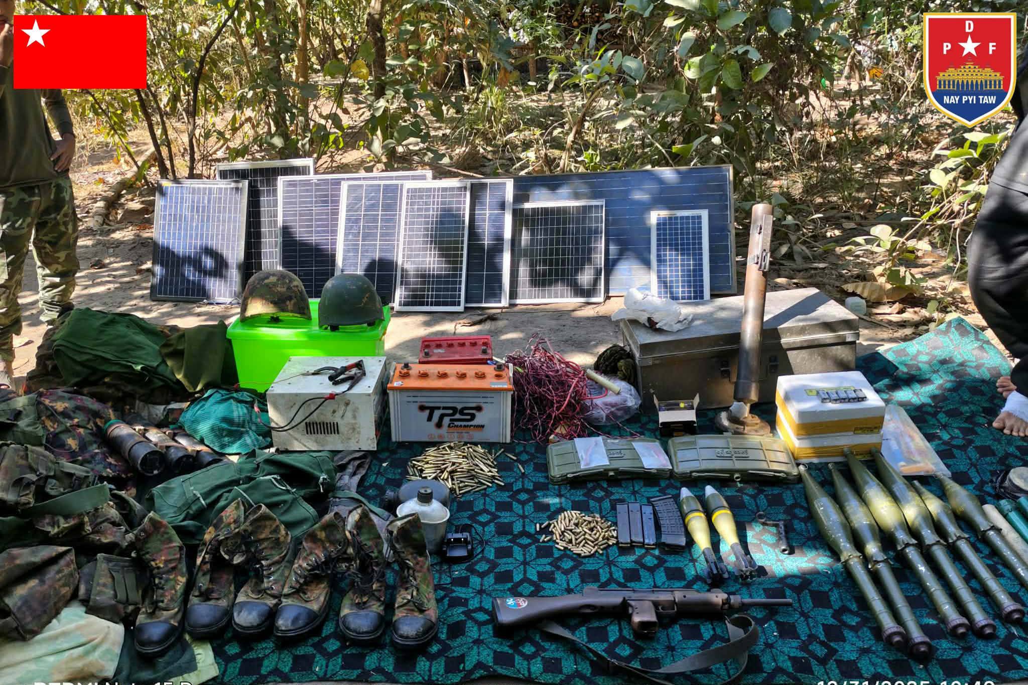 အကြမ်းဖက်စစ်အုုပ်စုတပ်သားတွေဆီက 60မမ (၁) လက်၊MA -13 (၁) လက်၊ RPGသီး (၆) လုံး၊ ပို့ယမ်း (၉) ခု၊ MA -13 ဘောက် (၃) ဘောက်၊ 9mm ကျည်အချို့၊ 60 သီး (၂) လုံး၊ 5.56 ကျည်အချို့၊ ရှေ့ထွက်မိုင်း (၅) လုံး၊ စစ်သုံးပစ္စည်းအချို့၊ ဆိုလာနှင့် ဘတ္ထရီ များ သိမ်းဆည်းရမိခဲ့တယ်လို့သိရပါတယ်။