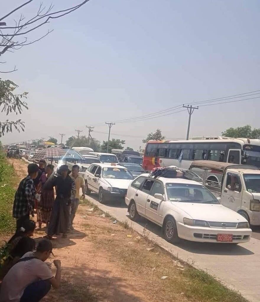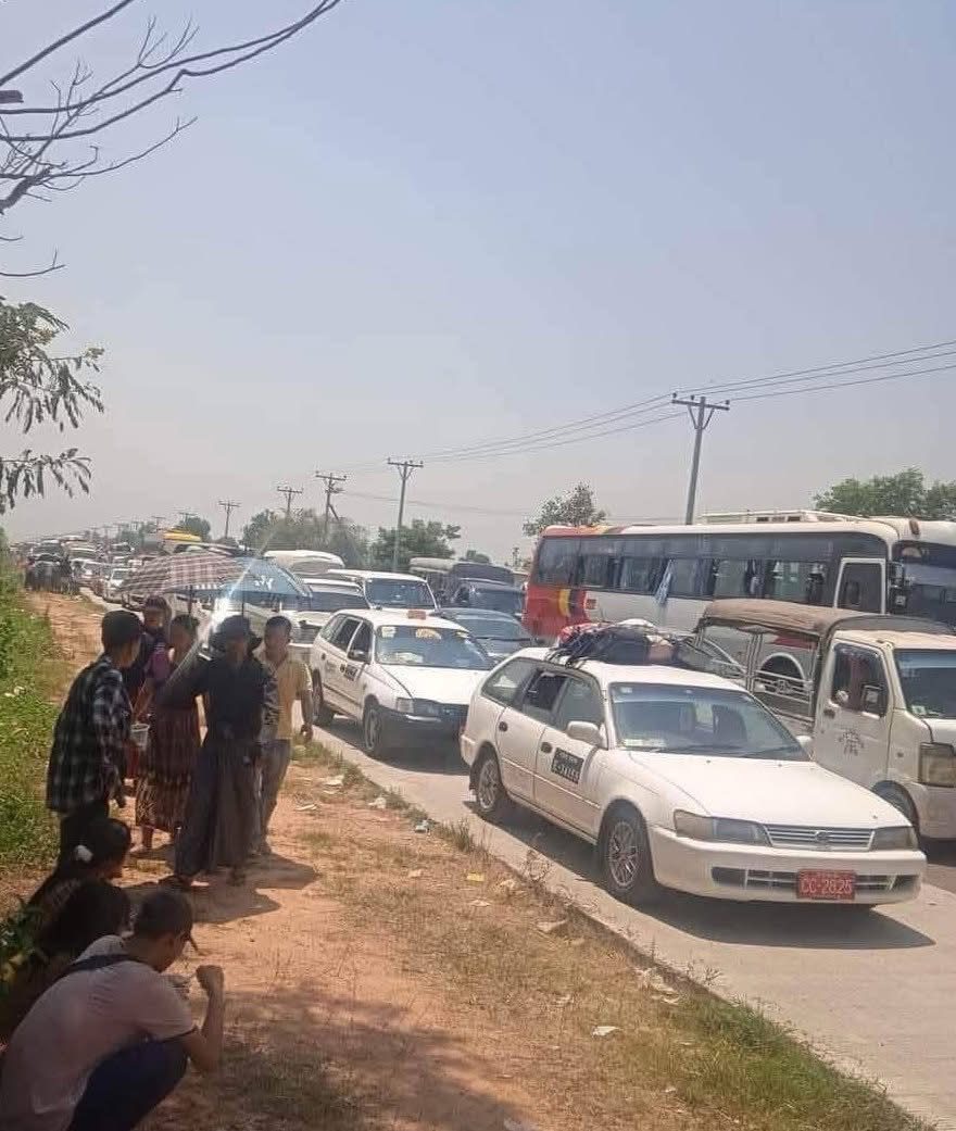 တိုက်ပွဲဖြစ်ပွားနေတဲ့ ရန်ကုန်-ပြည်လမ်းဝန်းကျင်က ယာဉ်တွေလည်း လက်ရှိအချိန်ထိ ယာဉ်ကျော်ပိတ်ပြီး အသွားအလာတွေ ရပ်ထားရတယ်လို့ သိရပါတယ်။