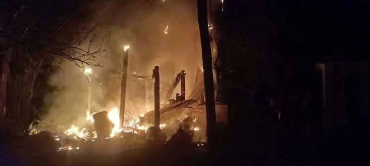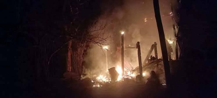 ဂန့်ဂေါမြို့နယ်၊ မြင်းဇာရွာ လေကြောင်းတိုက်ခိုက်ခံရပြီး မြင်ကွင်းအားတွေ့ရစဥ် (ဓာတ်ပုံ ယောအလင်းတန်း)